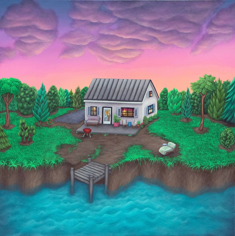 Stacy Leigh《The life of a drone day 8》(圖片:WOAW Gallery提供) 藝術家曾有不愉快的住房經驗,因此在腦海中幻想出一個她可以逃避現實不快的“b-roll”世界。畫作描繪的郊區謐靜,有著盆栽、小狗和亮麗的汽車。房子半拉的百葉窗後透出溫暖的光線,暗示著屋內舒適溫馨。而屋外周末的草坪被修剪得整齊,懸崖佇立。夏季周末的日子裏,住客們都可在草地上和崖邊燒烤野餐。 WOAW Gallery呈獻Stacy Leigh個展“ESCAPE TO B-ROLL” 展覽日期:3月20日至4月19日 展覽地點:香港中環皇后大道中9號The Galleria G07 【編輯:黃璇】