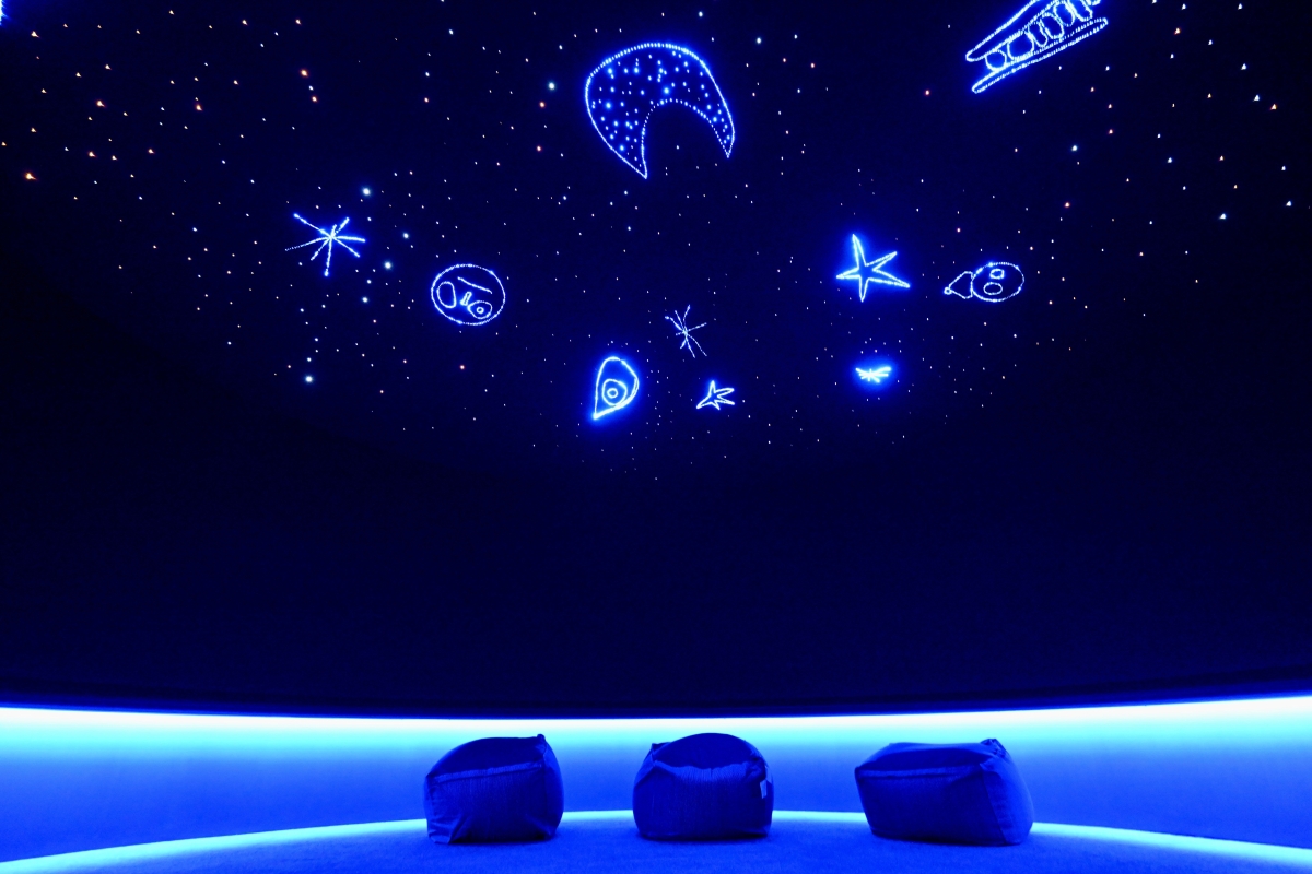 米羅三聯屏作品《煙火》,這件作品甚少在胡安.米羅基金會以外的地方展出 是次展覽共展出94件米羅的藝術作品,包括繪畫、雕塑、素描、紡織品、石版畫、海報和有關他的影像資料,從他早期至晚年的作品均有所涵蓋。當中許多作品均來自米羅本人於1975年成立的胡安.米羅基金會,展覽全面展現出大師在不同媒介上的突破及成就,讓觀眾回顧他的創作生涯。 香港藝術館亦特別邀請了本地藝術家進行藝術創作,向米羅的藝術傑作致敬,同時為展覽注入香港視點。新媒體藝術家梁基爵從米羅的詩意符號中獲取靈感,創作一系列多媒體裝置藝術,探索圖像與聲音轉化成符號的過程。藝術家陳麗同跟米羅一樣,在物料與表現形式上尋求突破,選取非傳統的雕塑物料,創作個人的抽象作品。插畫家林雅儀則聯同藝術館策展團隊透過繪本介紹米羅的創作特色及手法,並以米羅的風格為基礎,在館內設置擴增實境的場景,讓大小朋友一同探索米羅的詩意世界。