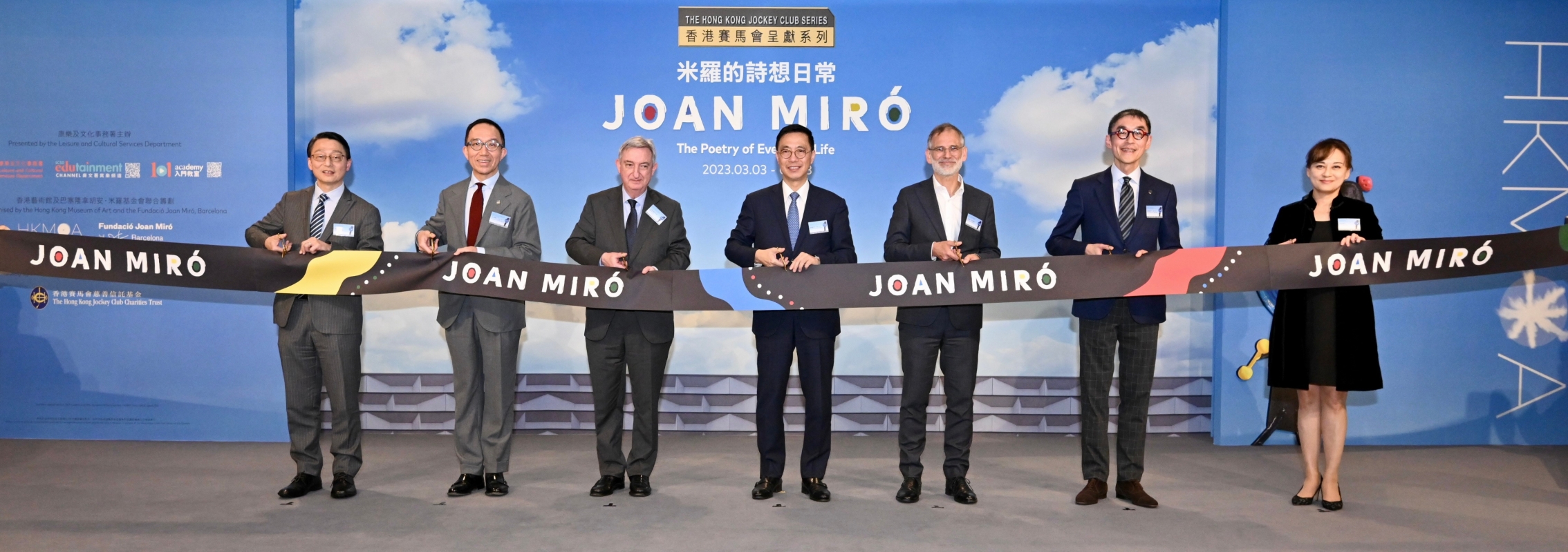 “香港賽馬會呈獻系列:米羅的詩想日常”展覽,今日起在香港藝術館舉行 香港特區政府文化體育及旅遊局局長楊潤雄在展覽開幕典禮上致辭時表示,由西班牙藝術大師米羅本人創立的胡安.米羅基金會,擁有世界上大師最全面的作品收藏,是全球備受讚譽的藝術機構之一。今次是基金會首次與康文署合作辦展。他指出,康文署多年來一直與世界各地頂尖博物館合作,將優質的展覽帶到香港。3月標誌着香港每年藝術和文化活動的開始,是次展覽連同接下來的各項精彩活動,包括即將於本月24及25日舉行的博物館高峰論壇,不僅吸引香港及世界各地的藝術愛好者,也將進一步鞏固香港長久以來作為國際著名藝術和文化中心的地位。 其他主禮嘉賓包括西班牙駐中華人民共和國大使拉法爾.德斯卡亞.德.馬薩雷多,米羅基金會總館長馬爾科.丹尼爾,香港賽馬會慈善及社區事務執行總監梁卓偉,博物館諮詢委員會主席蘇彰德,康文署署長劉明光和香港藝術館總館長莫家詠。