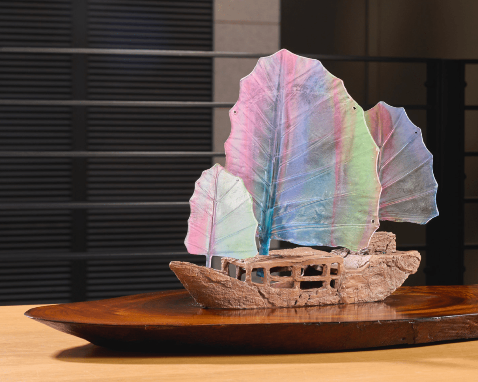 《福氣》細節 由傳統失蠟鑄造工藝師廖榮想師傅、當代工藝師林昆佑及林繁盛共同創作的一對以香港帆船為形的混合媒介雕塑《一帆風順》。