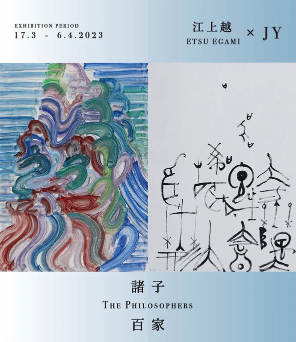 在閱讀中,諸子百家的哲學見解引起了江上越對現代的社會的反思,在學習這些文獻史料的同時,她開始用畫筆為中國古代哲學家造像。這次展覽展出江上越具象徵性的肖像畫系列,畫作以大膽而婉轉的筆觸和明快而深沉的色調,透過表面形體捕捉諸子百家的思想精髓。為了使主題更豐滿,展覽邀請了藝術家JY合作,揮筆寫下古人的經典名句,與諸子的肖像相互引發、共振和鳴,開啟新的思想空間,展現出一種嶄新的藝術形式。