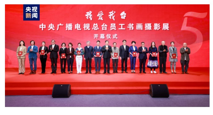 總台員工書畫攝影展獲獎員工代表合影。(圖片:央視新聞) “我愛我台——中央廣播電視總台員工書畫攝影展”是慶祝中央廣播電視總台成立五周年系列活動之一,共展出書法、國畫、油畫、攝影作品近500件,以文化氣、書香味體現了總台人追求卓越、創造一流的藝術匠心,彰顯出國家台的形象氣質。本次書畫展受到業界高度關注,來自中國書法家協會、中國美術家協會、中央美術學院、中國藝術研究院等多位著名書畫家參展。