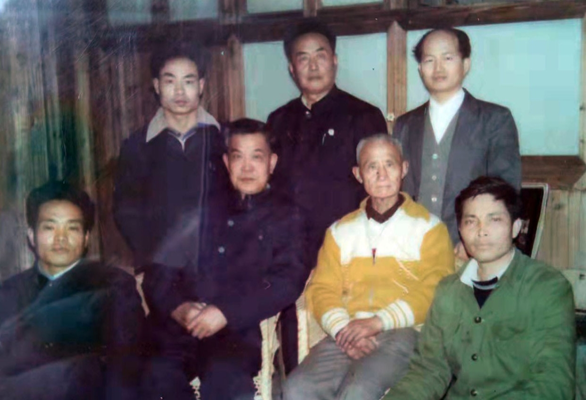 1984年2月26日萬老師81歲生日,洪鼎生(後左一)和洪正福(後中)、洪敦耕(後右一)師兄陪同王景春師叔及其學生陳世萍、黃德鎮同到萬師家拜壽。