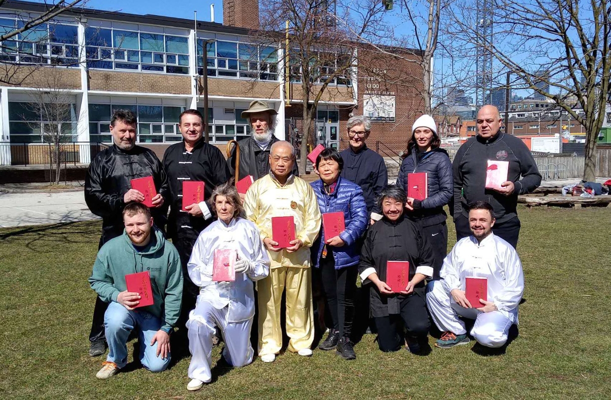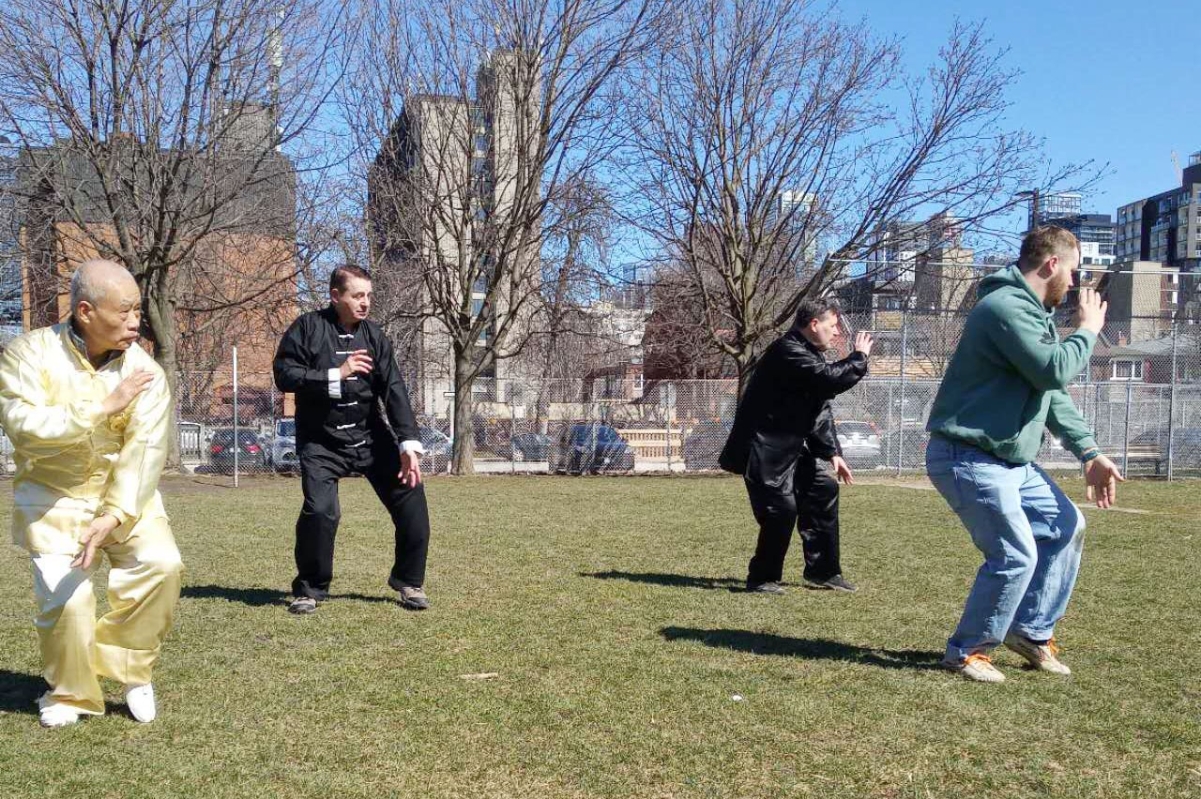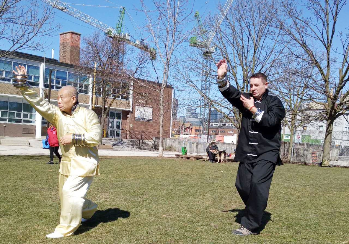 武術家洪鼎生與學生們練習自然門鴛鴦圈。 作者洪鼎生先生系武術家萬籟聲的入室弟子,是六合自然門傑出傳承者。長期在加拿大多倫多市執教武術,並為中醫針灸執照醫師,為加拿大國術總會理事、加拿大傳統武術會師傅會員、加拿大武術聯合會裁判和八段師範,雖已退休多年,仍黃昏老牛自奮蹄,正在籌覓翻譯家將《萬籟聲論武》譯英出版,向世界武術愛好者介紹萬籟聲老師的武學精神和中國傳統式的技擊術,努力推廣武術,為爭取武術項目早日列入奧運會競賽項目而發力。