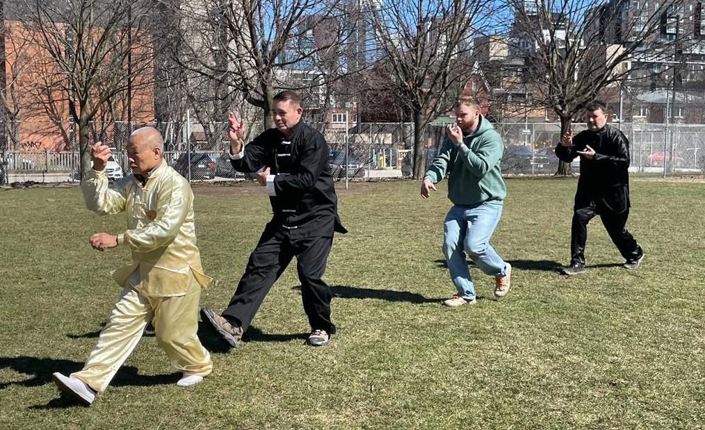 武術家洪鼎生與學生們練習自然拳。