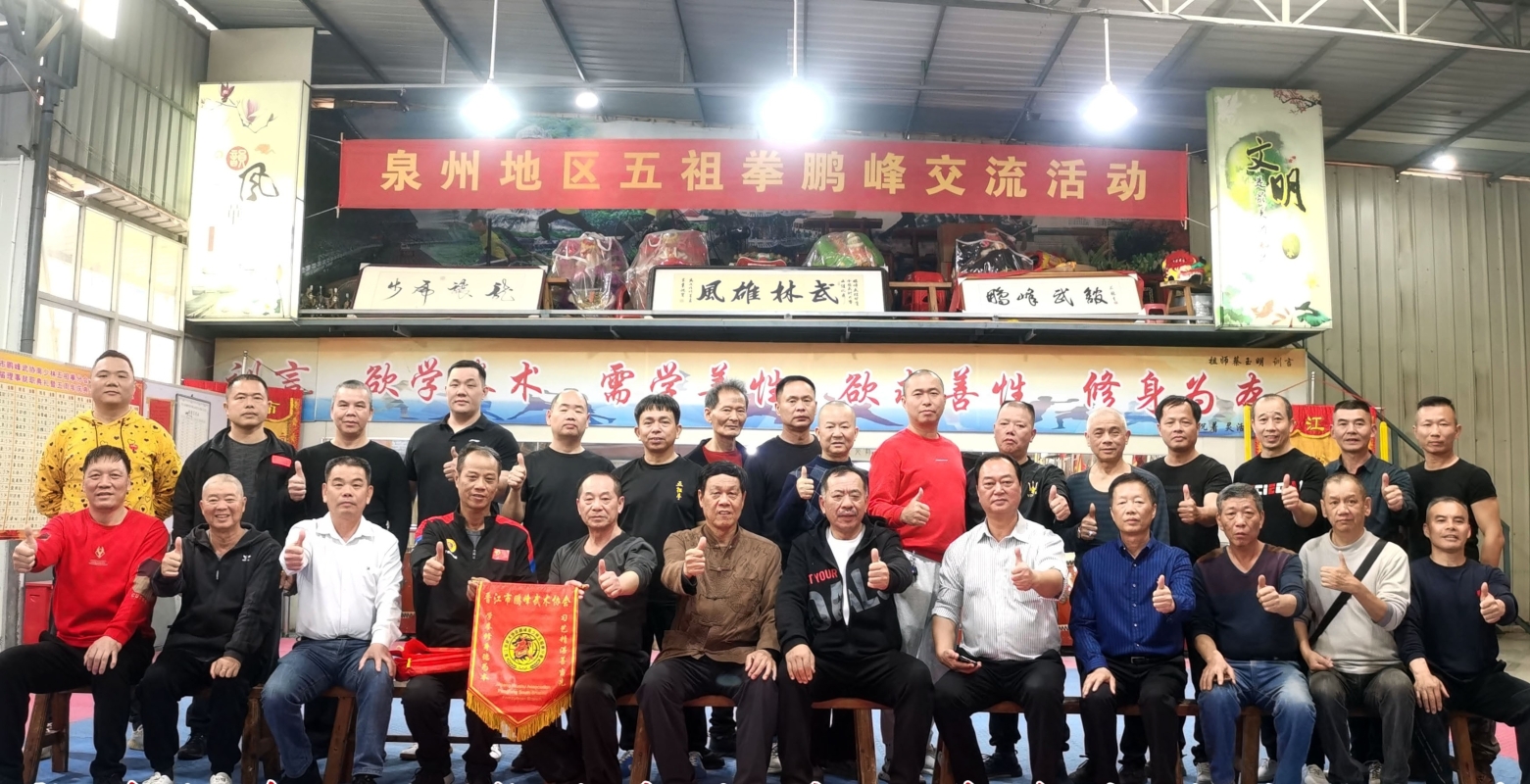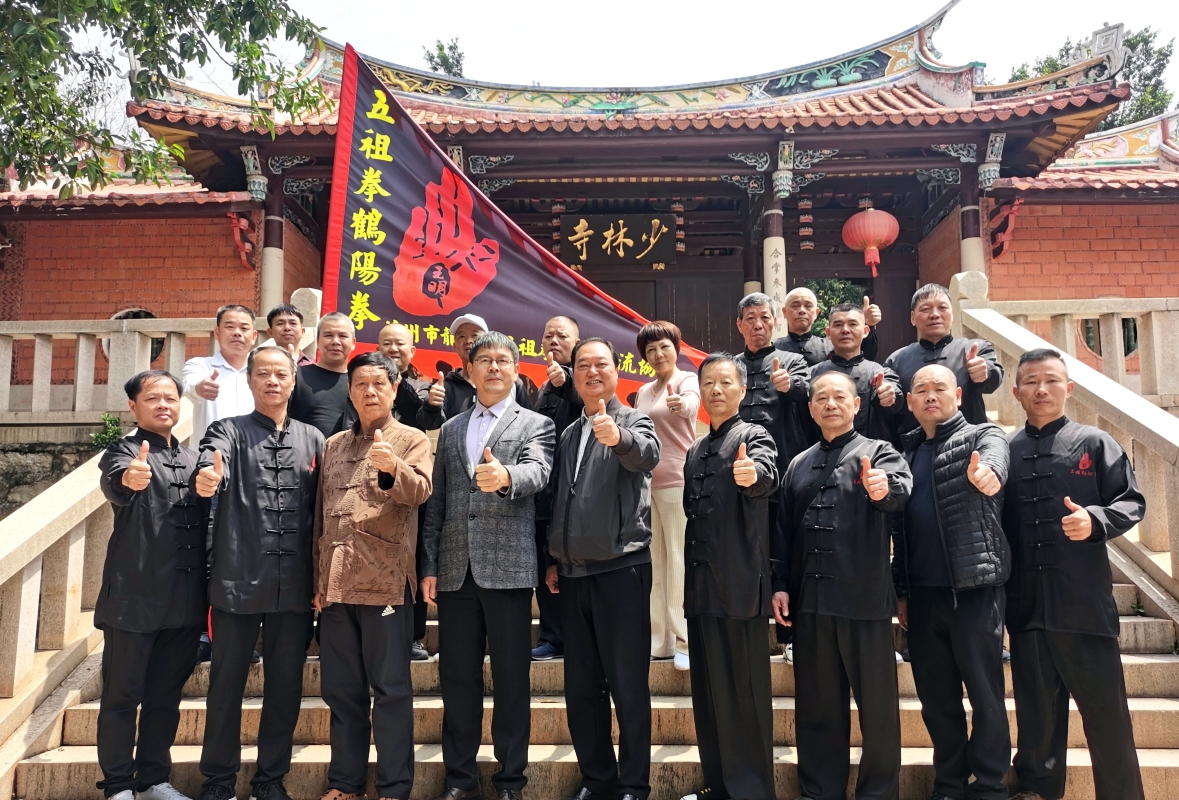 為弘揚傳統武術,交流分享習武心得。4月2日,福建省漳州市龍海區五祖拳文化交流協會由會長莊百堅、秘書長劉毅勇、漳州市龍文區兩岸對台武術文化交流中心陳金水會長帶領團隊一行應邀赴泉州少林寺,泉州市晉江鵬峰武術協會進行為期一天的傳統武術文化交流活動。少林寺的釋常定方丈和武僧團長理剛非常重視此次交流活動,當天,少林寺武僧到場做精彩演練。龍海區五祖拳名師也和同門進行交流分享,場面氣氛熱鬧。 五祖拳,是中國傳統拳術中的南拳之 一。此拳是由蔡玉鳴(福建泉州人1853-1910)綜合了白鶴拳、猴拳、羅漢拳、達尊拳和太祖拳而成的,故稱五祖拳。五祖拳屬典型的外家功力型拳術,威猛激烈,以柔濟剛,包涵內家拳的很多技擊法和內功修煉法。2008年6月7日,五祖拳經國務院批准列入第二批 國家級非物質文化遺產名錄。
