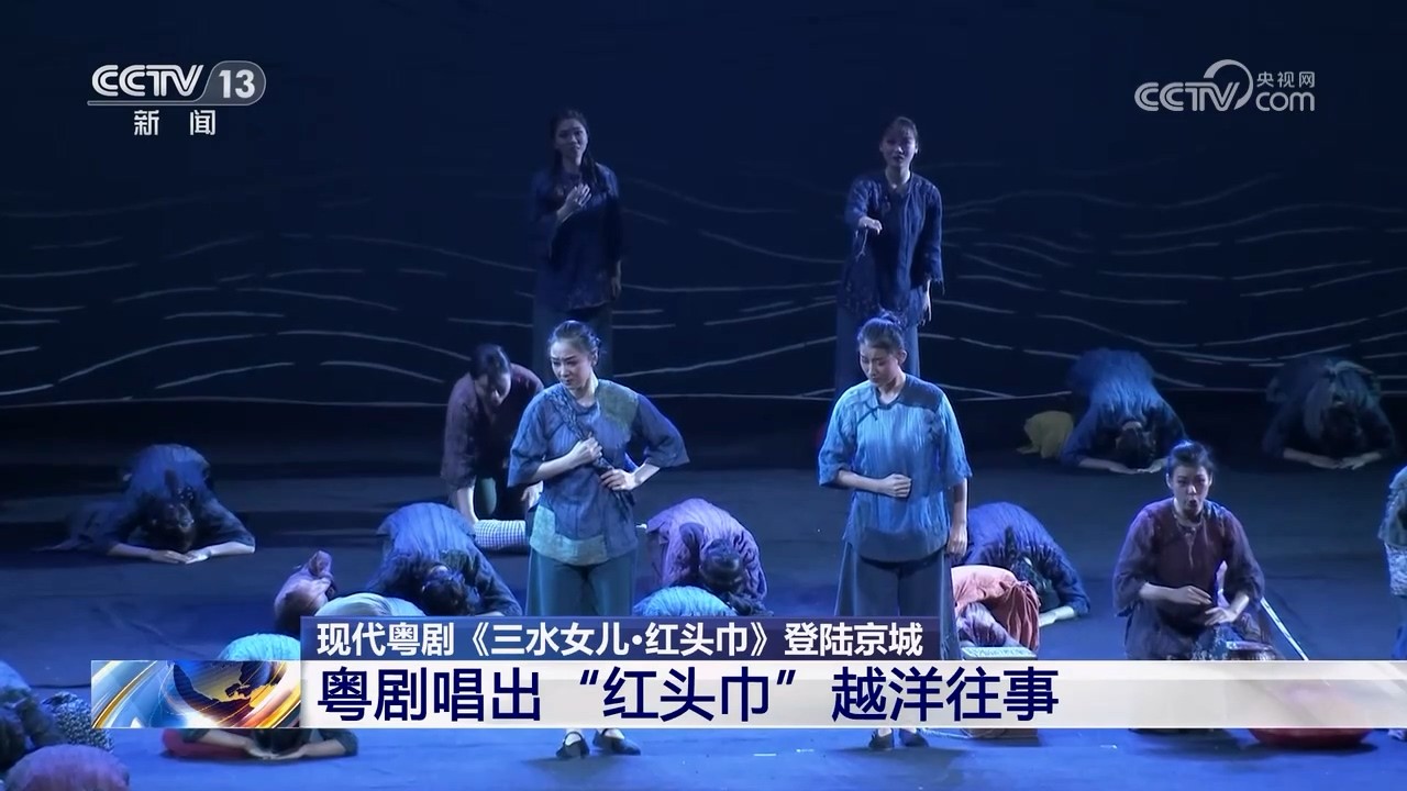 現代粵劇《三水女兒·紅頭巾》登陸京城。(圖片:央視網) 粵劇《三水女兒·紅頭巾》是一部具有濃郁地域特徵與文化特色的粵劇劇目,該劇深度挖掘展現了20世紀初,佛山三水一群女性下南洋謀生,做建築工養家糊口的特有歷史現象。通過講述她們離鄉、思鄉、望鄉、返鄉的情緒變化,表達出她們希望為家人帶去好運、渴望與家庭團聚的情感訴求,致敬這群“在逆境中求生存、吃苦耐勞、勤儉節約”的中華兒女代表。該劇由國家一級演員、文華表演獎、中國戲劇梅花獎獲得者曾小敏領銜主演。