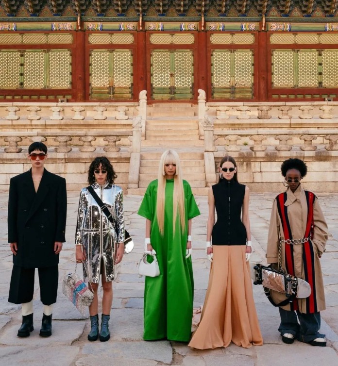 Gucci在首爾景福宮舉辦2024早春系列時裝秀。 Gucci新任創意總監Sabato De Sarno的首秀將於9月在米蘭時裝周亮相,因此,本場時裝秀依然由內部團隊打造,匯聚多位設計師的視覺靈感,以他們的獨特視角演繹經典的創意流變,描繪了多元生活圖景。全新2024早春系列既承襲了米開理在任時期的華麗風格,又汲取了品牌早期標誌性的典藏元素,還突出表現了運動機能主題,模特身著潛水服、手持滑板,搭配輕盈的紗裙,詮釋風格融合的意趣,為Gucci嶄新篇章的展開埋下又一個伏筆。