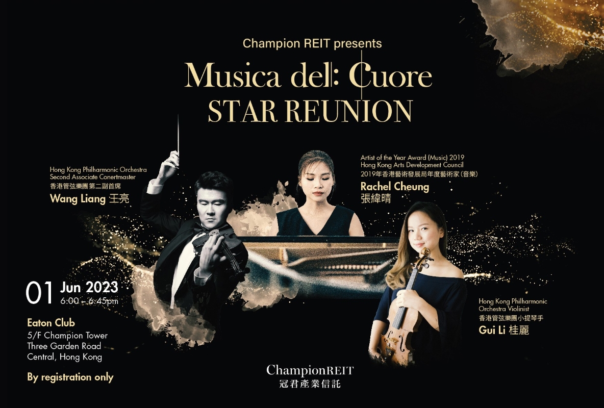 “樂‧心”系列6月呈獻Star Reunion音樂會香港新聞網5月24日電 冠君產業信託旗下的音樂企劃“樂‧心”音樂會系列,自2015年成立後,多年來無間斷於中環地標物業花園道三號定期舉辦免費古典音樂會,為本地青年樂手提供演出平台,孕育具實力而未被充分發掘的年輕音樂人成為新世代表演者。至今共已舉辦超過200場免費音樂會,成為中環芸芸商業大樓之中,別具藝術文化氣息的地標。