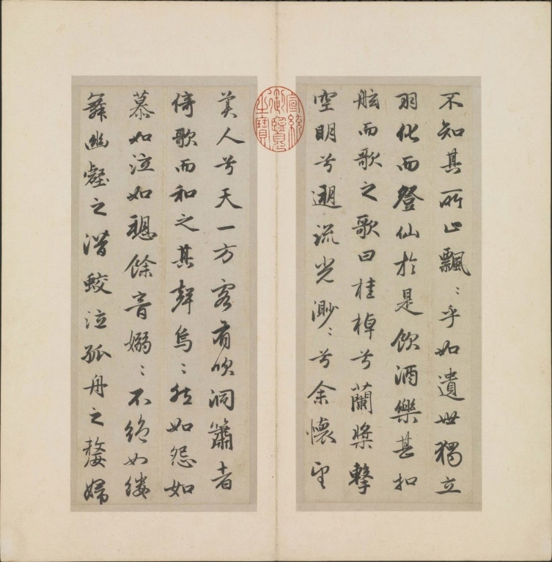趙孟頫《行書赤壁二賦冊》(局部)。(圖片:台北故宮博物院) 今季的重磅展品是元代書畫家趙孟頫的《行書赤壁二賦冊》。台北故宮博物院通過對趙孟頫其人、其言、其藝的介紹,勾勒並傳達趙孟頫對蘇軾的敬仰之情。