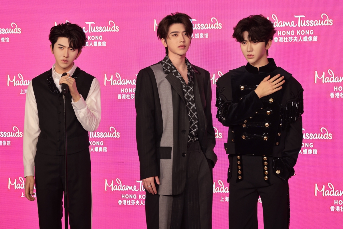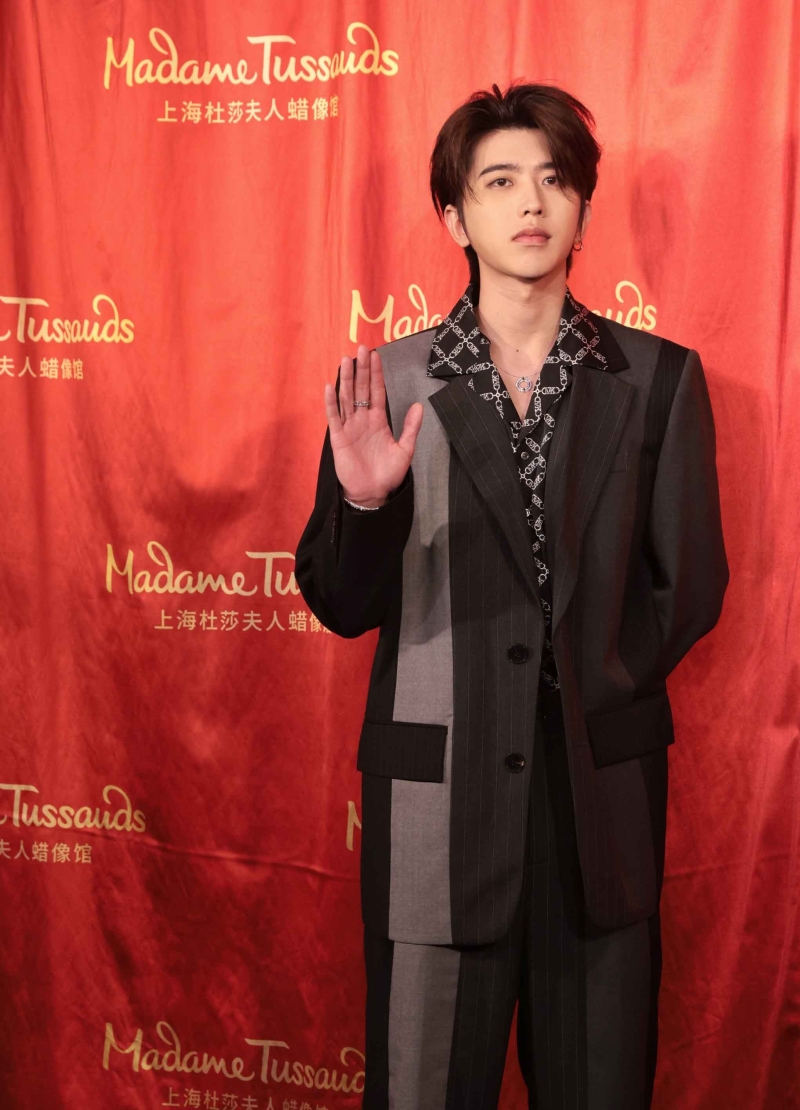 內地藝人蔡徐坤在香港杜莎夫人蠟像館出席其個人蠟像揭幕禮。