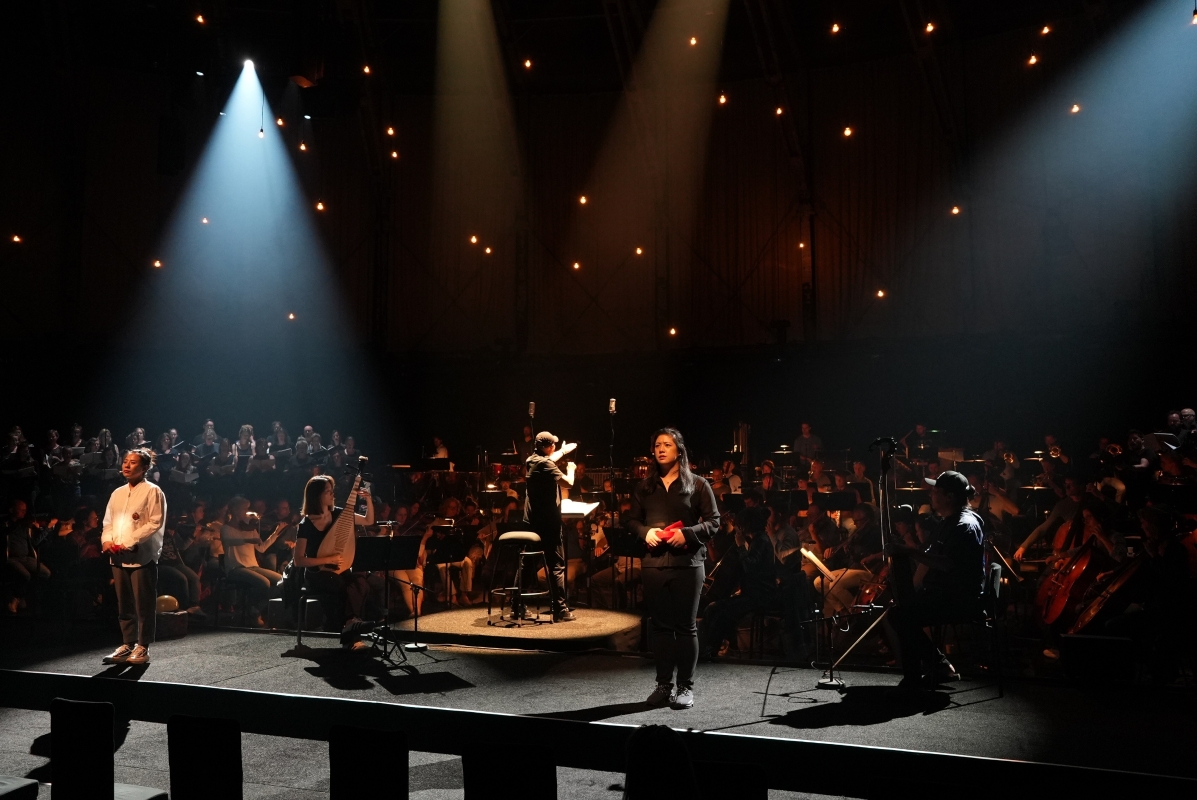 《大自然的安魂曲》音樂會現場。(圖片:政府新聞處) 譚盾自今年1月1日起擔任香港“文化推廣大使”,任期5年。康文署期望“文化推廣大使”藉邀請本地青年藝術家參與內地或海外藝術節或演出,能擴闊他們的國際視野。除了是次成功引薦鍾嘉欣於荷蘭藝術節亮相,譚盾在今年4月亦邀請了香港青年男高音陳晨和女高音鄺勵齡與海峽兩岸的音樂人攜手在福州的《敦煌•慈悲頌》中演出。 【編輯:黃璇】