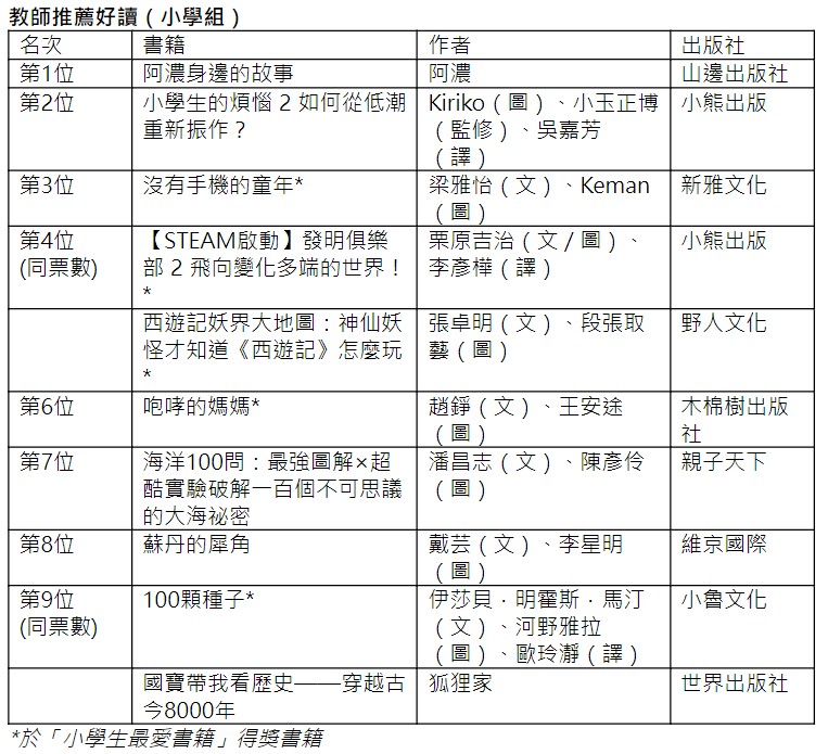 中學組獲獎書籍。(主辦方供圖) 投票人數再創新高 本屆“十本好讀”的投票人數創歷屆新高,總票數為45,602票,較去年增加逾600票,共有317間中學和小學參與投選心儀的優質讀物,反映校園閱讀氣氛熱烈。得獎書籍的類別更趨多元化,涵蓋科學、推理、傳記、歷史、文學等。中學組及小學組共有135本入圍作品。“愛閱讀.樂分享”是教城努力推廣閱讀文化的宗旨,閱讀恆常化及適應閱讀新常態幫助整個學界構建閱讀網絡,連結讀者、作家、出版社,享受閱讀時光,跨越想象空間。 阿濃文字淺白易懂 小學師生喜愛繪本