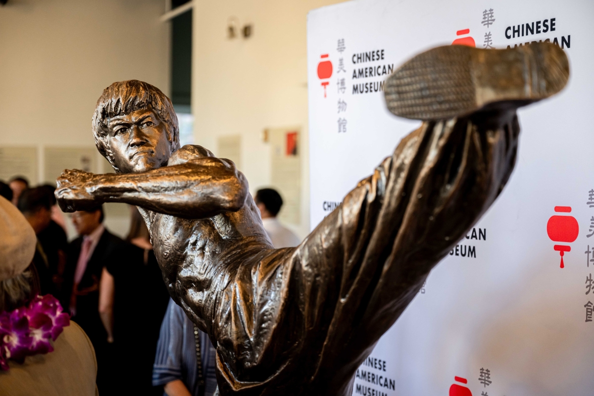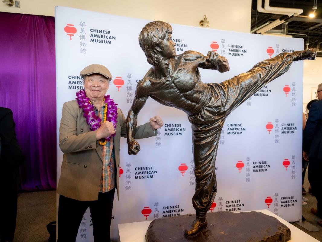 於展覽中展出的真人原大李小龍雕像。 朱達誠為屢獲殊榮的香港雕塑藝術家,對人物雕像,以及將中國神話、符號和書法融入現代藝術的抽象雕塑創作充滿熱誠,並因而聞名。他所創作的雕像非同凡響,遍布公共空間,紀念亞洲各地的眾多傳奇人物,如李小龍、孫中山和邵逸夫。