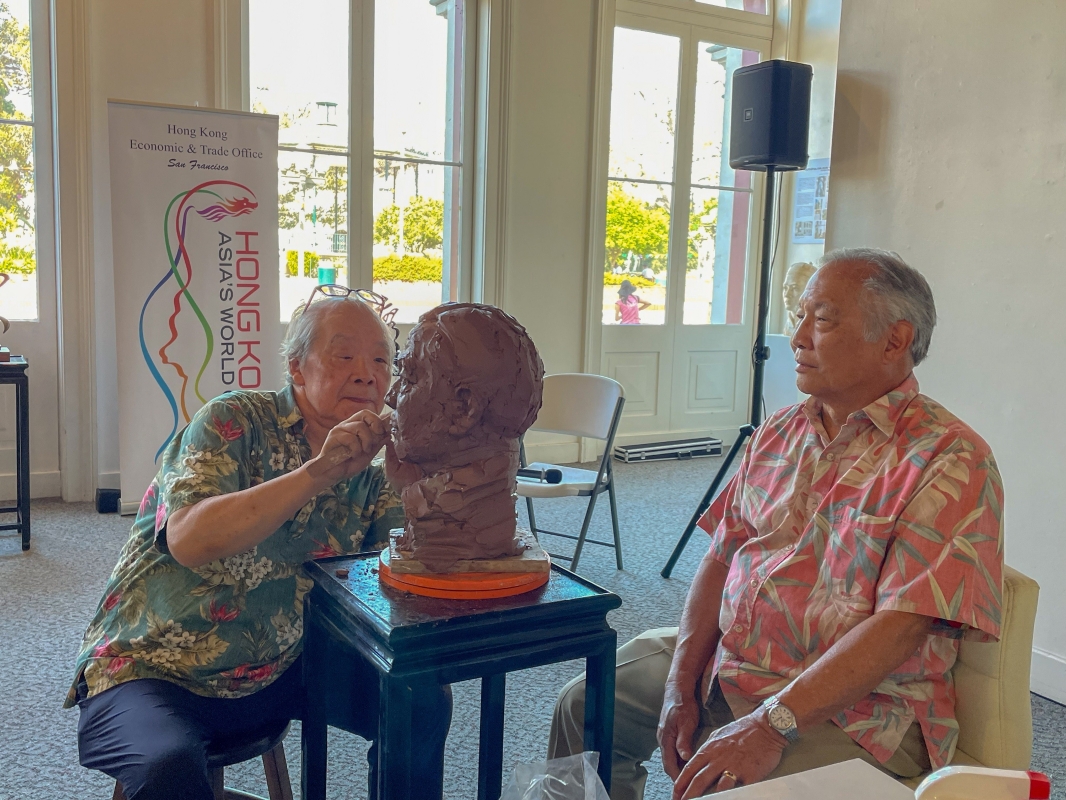 朱達誠(左)進行現場雕塑示範。 駐三藩市經貿辦處長曾舜雯表示:“我們很榮幸能夠支持朱大師在美國的首個展覽。除了展覽之外,我們也期待周邊活動,特別是大師講座和藝術家論壇,透過分享和對話,促進香港和美國之間的文化交流。” 朱氏從香港出席展覽並與洛杉磯民眾互動。他在講座中介紹了他多年來的重要作品,又即席進行示範,並且舉辦了雕塑大師班,促進了“東西方相遇”的文化交流和欣賞。展覽的下一個目的地將是加拿大多倫多。 【編輯:黃璇】