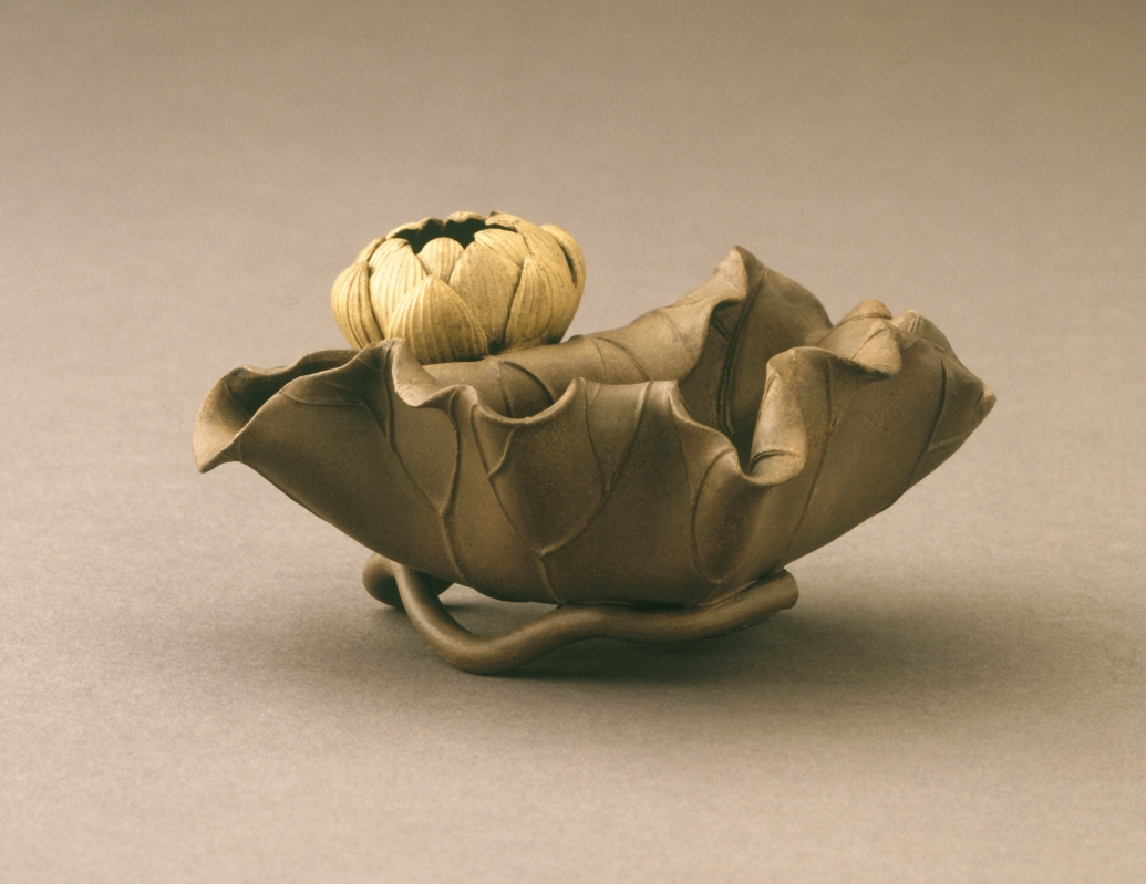 圖為相傳由清代紫砂名家陳鳴遠創作的巧色荷花葉洗(用來盛水清洗毛筆的工具)。(圖片:政府新聞處) 精選展品包括清代以竹製作的三足香爐、清代書寫時用的竹紋玉臂擱、相傳由清代紫砂名家陳鳴遠創作的巧色荷花葉洗(用來盛水清洗毛筆的工具)、清代書畫篆刻家瞿應紹創作的粉彩梅枝刻銘壺,以及浮雕螳螂蝴蝶紋犀角杯等。