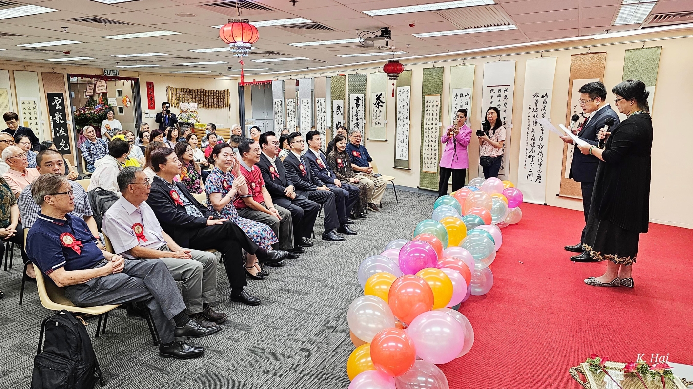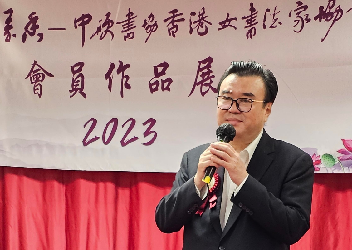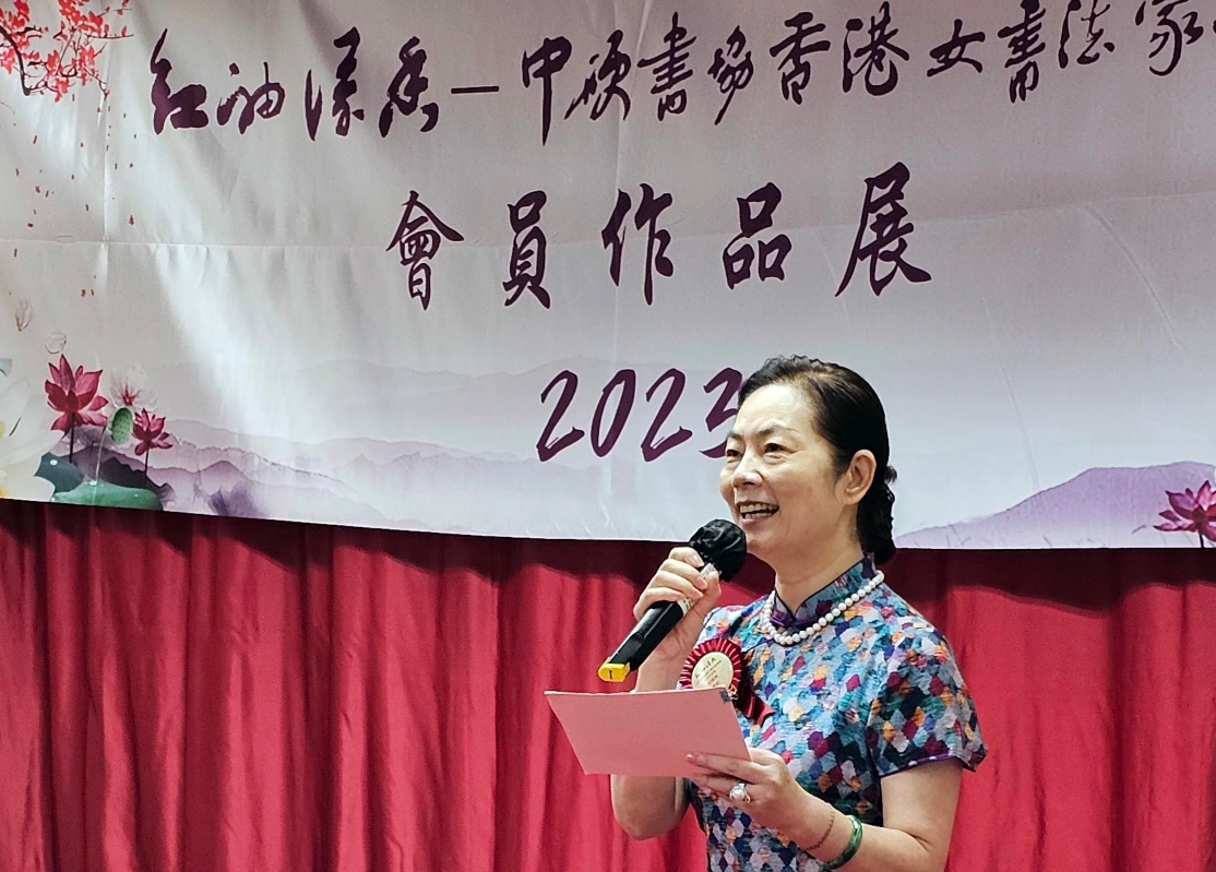中硬書協香港女書法家協會主辦的“紅袖添香·中硬書協香港女書法家協會會員作品展2023”在香港大學徐展堂樓舉行了開幕典禮。 副會長、主持人呂卓君介紹,中硬書協香港女書法家協會於2018年8月成立,目的開展書法雅集、筆會和書法講座等系列活動,也將和內地的書法團體交流切磋。通過這些活動的展開,讓更多的女性書法愛好者將中國傳統文化發揚光大。