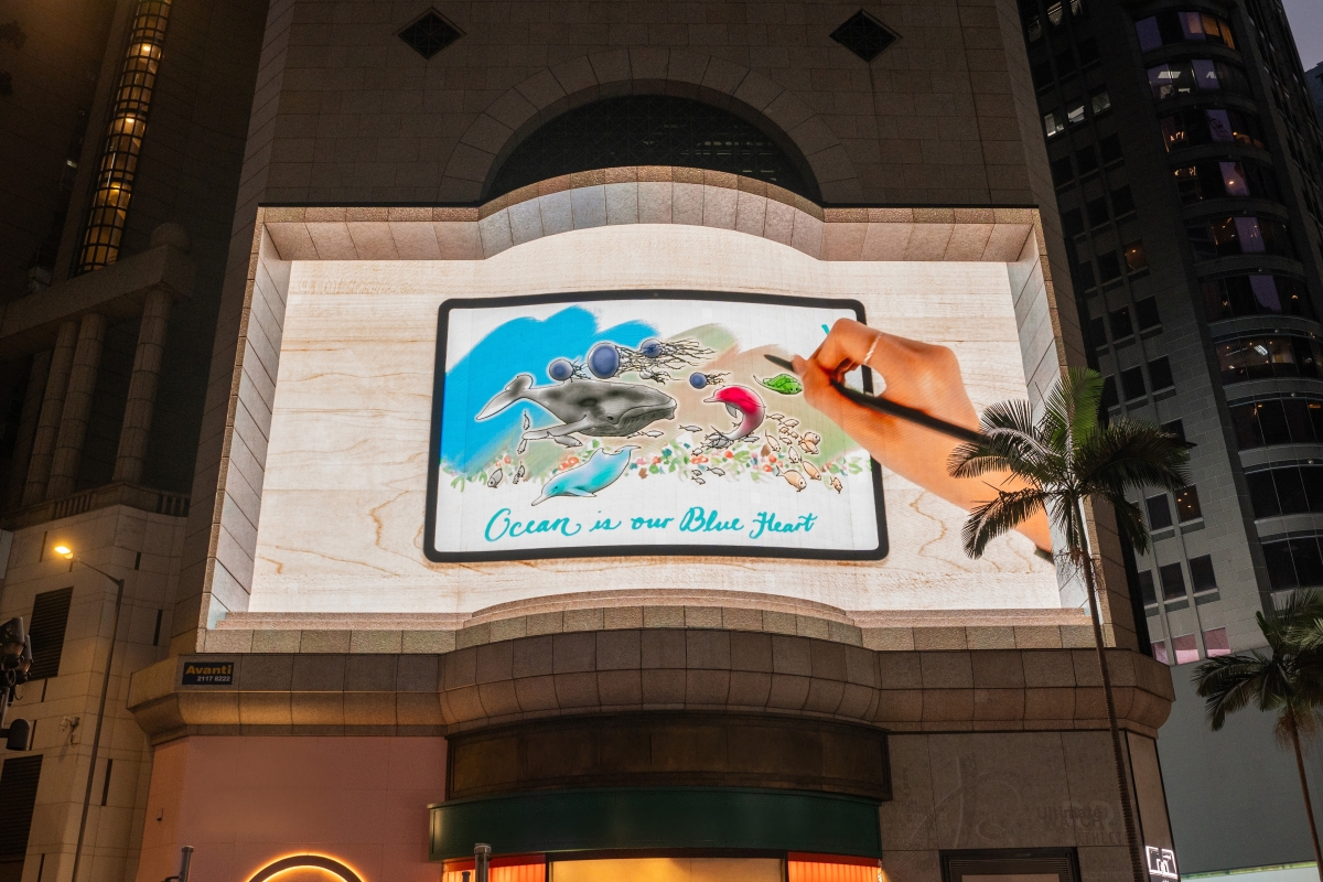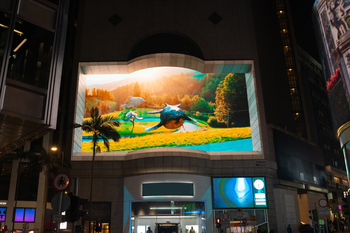 “共創‘您’想大自然”3D海洋世界動畫呈現中環大型戶外屏幕。