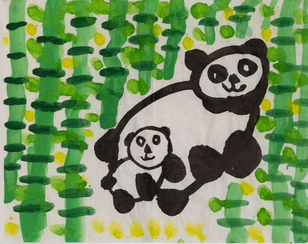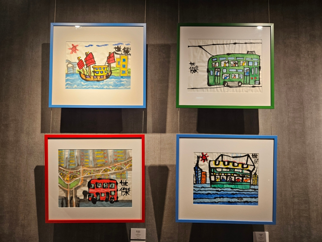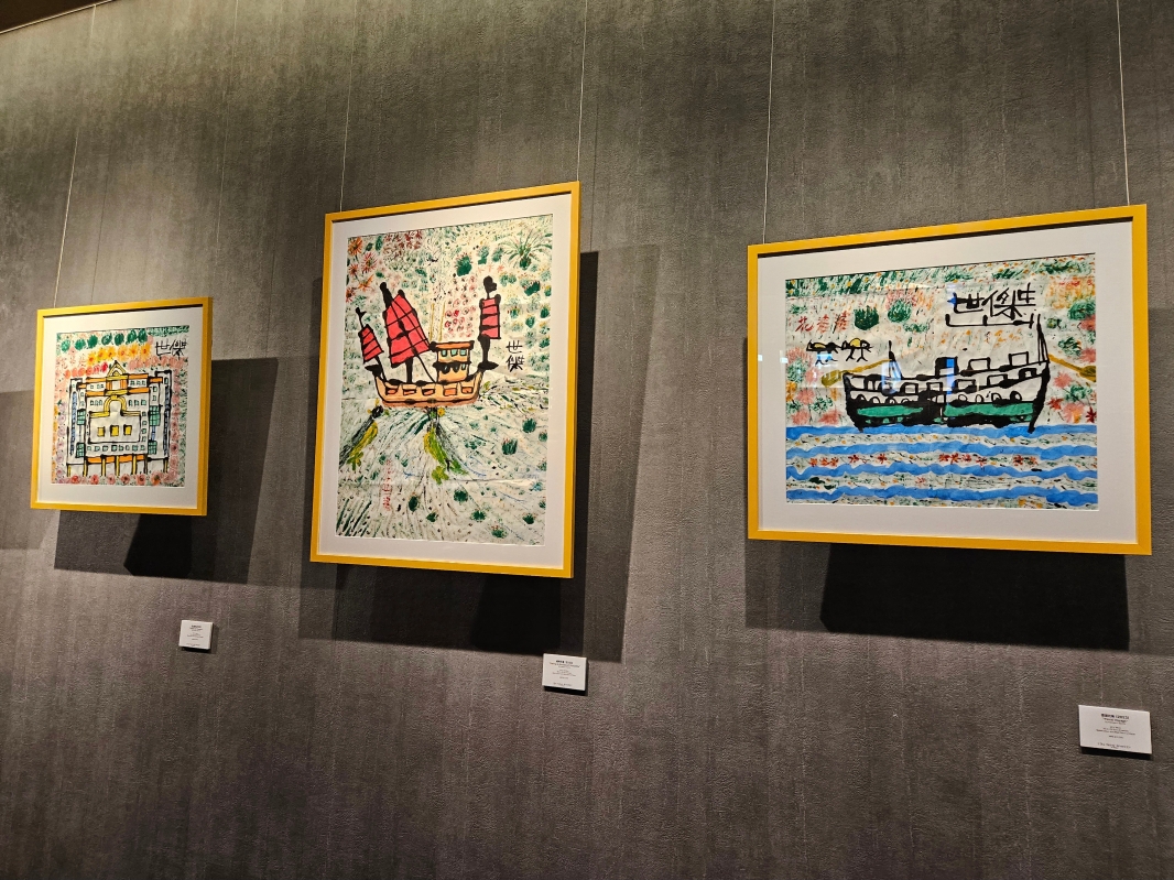 圖為花婆婆與世傑合繪作品。(香港中通社記者 黃璇攝)