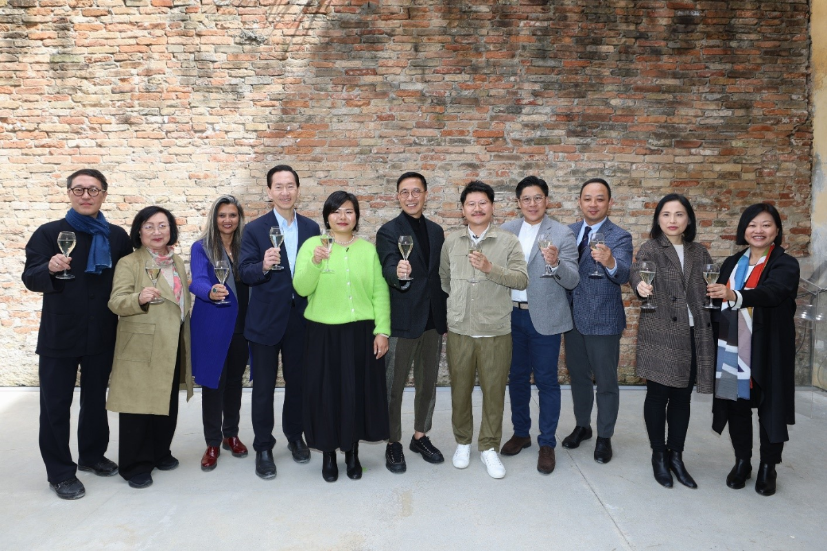 一眾嘉賓出席“楊沛鏗:雙附院,香港在威尼斯”開幕儀式,右五為藝術家楊沛鏗。攝影:Winnie Yeung @ Visual Voices,圖片由M+提供 藝術家楊沛鏗表達自己的興奮之情:“非常感謝香港特別行政區政府、M+和藝發局的支持,讓我有機會在這國際藝壇盛事展示我的新作。能代表香港在威尼斯探索渴望和歸屬感的概念,我深感榮幸,希望觀眾都能在展覽中找到共鳴和慰藉,讓大家能思考我們皆有的深厚依附之情。籌辦展覽從來都不是只靠一人獨力完成之事,我希望在此感謝我的團隊,和所有支持這個項目的人。”