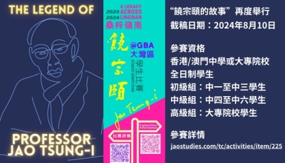 “饒宗頤在澳門故事分享會”現場。 分享會分為兩部分,第一部分的座談會由香港大學饒宗頤學術館館長李焯芬、饒學聯匯創會會長饒清芬、饒宗頤文化館管理委員會副主席黃景強和饒宗頤學術館之友會長李俊鳴分享饒教授與澳門的故事,其中黃景強是東亞大學的創辦人之一,分享了很多鮮為人知的饒教授上世紀八十年代初奔走兩地,專注教研的趣事;饒清芬協助饒教授舉辦各類參訪與展覽,分享1999年慶祝澳門回歸祖國,捐贈12呎巨幅荷花的故事,以及從1999年“清涼世界”、2001年“選堂雅聚”、2006年“普荷天地”、2011年“意會中西”到 2016年“蓮蓮吉慶”展覽,饒教授如何用心準備作品,重視“求是、求真、求正”的精神。香港大學饒宗頤學術館之友會長李俊鳴會長則分享饒教授對對澳門文化事業的貢獻,以及與潮屬同鄉的情誼。 分享會的下半部由香港浸會大學饒宗頤國學院學生分享,學生眼中的饒宗頤教授,分別以“嶺南”、“澳門”、香港“長洲”為主題。學生從多方面、多角度尋找饒教授的足跡,仔細考察饒教授與不同地區的故事。 “桑梓嶺南:饒宗頤在大灣區學生比賽”歡迎澳門、香港全日制中學生和大專院校學生參與,分為論文類和創意藝術類。參賽學生必須自行搜集資料,亦可參與由主辦單位舉辦的相關講座和活動,以蒐集和認識饒教授的故事。參賽學校也可透過相關的學術、藝術機構之網站或出版刊物蒐集有關資料。參賽作品種類多元,包括現代文(小說、散文、記敘文、議論文等)、古文、詩歌等文學創作,或以視覺藝術和表演藝術形式呈現,如繪畫、雕刻、塑像、攝影、手工藝,以及文學藝術、音樂藝術、數碼藝術、建築藝術、戲曲創作、舞蹈表演等。詳情可瀏覽網址:jaostudies.com/tc/activities/item/225。 【編輯:黃璇】