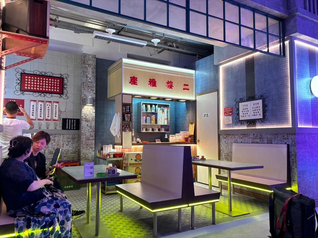 “曲詞印記”展覽場景——“茶餐廳”。(香港中通社記者 黃璇攝)