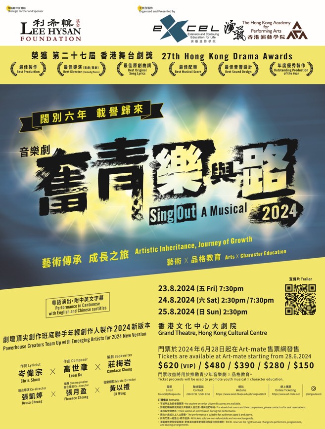 推動學生正向教育音樂劇《奮青樂與路》旨在通過藝術教育培養學生的團隊合作和表演能力。由不同學校學生共同參與,不僅促進了學校之間的交流,也豐富了學生的學習體驗。計劃鼓勵青少年發掘他們的天賦和興趣,讓他們能在課堂之外找到更多可能性,助其在未來的藝術旅程中奠定堅實基礎。通過是次音樂劇,學生們不但學習如何演出,更學習了展示和發掘自己的才能,克服挑戰,並在過程中提升自信和技能。演藝進修學院總經理及音樂劇《奮青樂與路》2024監製嚴翠芳非常高興能夠在一群青少年中看到不屈不撓的精神和完全的投入:“年青人參與這一次的音樂劇製作,通過表演藝術的訓練,讓他們更懂得為自己的目標而奮鬥,建立更堅毅的抗逆能力和團隊精神。”另外,利希慎基金總裁何宗慈亦希望學生能夠提升對自己的期望:“計劃內有如此好的團隊去提升他們的水準,在日後踏出社會時,學生會對自己往後的人生有更高的自我要求。” 不僅僅是藝術才能的培養,品格教育更是此次計劃的核心,當中包括團隊合作、責任感、溝通能力和解決問題的能力等多方面的培養。音樂劇讓學生學會如何應對壓力、分配時間,他們需要合理安排時間,管理好學習、排練和休息之間的平衡。同時亦學會如何表達自己的意見與聆聽別人的建議,培養相互尊重和有效溝通的能力。聯合導演張凱婷更讚揚學生在綵排時互相鼓勵:“有一位學生曾經有不太好的經歷,但他卻以正面的心態去感染氣餒、灰心的同學,令其有一百八十度的態度轉變,為劇組帶來正能量。” 演出日期: 8月23日至24日(晚上7:30) 8月24日至25日(下午2:30) 地點:香港文化中心大劇院 【編輯:黃璇】