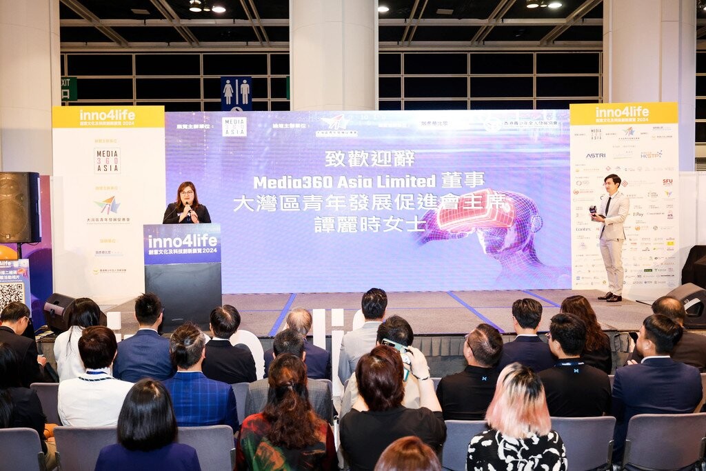 大灣區青年發展促進會主席譚麗時作為策展人在開幕典禮致辭 inno4life 創意文化及科技創新展覽2024開幕典禮的出席主禮包括全國港區人大代表、互聯網專業協會會長冼漢廸MH、香港立法會議員黎棟國GBS,IDSM,JP、全國政協委員、香港立法會議員邵家輝BBS, JP、香港應用科技研究院董事局主席李惠光工程師 BBS, JP、香港數碼港管理有限公司首席企業發展官朱美恩女士、InvestHK 投資推廣署(初創企業)高級副總裁何至鋒先生、斑馬星球科創加速平台創始合夥人洪爲民教授 JP、大灣區青年發展促進會首席會務顧問,香港青年交流促進聯會榮譽主席徐小龍博士 MH、香港內地經貿協會會長 黃炳逢先生、香港電腦商會創會會長 張耀成先生、香港創科發展協會會長李煥明博士、WebX 產業聯盟創會會長 許健生先生、香港軟件行業協會黃錦麟會長、大灣區一帶一路青年企業家協會總幹事羅家遠先生、互聯網專業協會副會長 羅少雄先生、Zeekr香港澳門總代理及錦龍汽車集團總經理梁栢福先生、商湯科技聯合亞太業務事業群, 香港及澳門業務總經理馮愈先生、中國香港無人機運動總會會長鄒偉傑先生等。 大灣區青年發展促進會主席譚麗時作為策展人在開幕典禮致辭時提到對所有出席的嘉賓、支持機構以及市民表達了衷心的感謝,指出正是每年各個機構、企業等的支持,才能讓展覽得以持續舉行並取得成功。譚主席強調,希望能夠充分利用自身的優勢和學校資源,促進科技界、創新科技界與學生之間的交流與合作,共同成就這場展覽。她期待著透過這個平台,激發更多創新思維,推動行業的進一步發展。此外,她也在致辭時提到感謝一直以來支持inno4life的全港人大港區代表、互聯網專業協會冼漢廸MH、香港立法會議員黎棟國GBS,IDSM,JP、香港立法會議員邵家輝JP,以及香港應用科技研究院李惠光工程師BBS,JP等,讓展覽生色不少。
