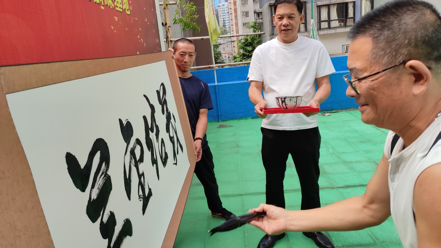 香港新聞網10月31日電 金秋十月, 香港“世界武術書畫家聯會”展開連場活動,陸續在各地進行設立武術基地,弘揚傳播中華書畫和武術文化。10月30日,居住香港的嵩山少林寺武僧,俗家弟子釋延榮與世界武術書畫家聯會主席高國雄在武館展演南拳北腿,包括功夫書法、墨拳無雙、五祖拳、硬氣功頭開鋼板、川劇變臉以及氣功飛針穿玻璃等武藝,以武會友。 盡管高師傅與釋師傅分別出自南北派別,但正所謂“天下武林是一家”,兩人惺惺相惜,在現場義結金蘭,雙方表示將致力推廣南北少林武術,傳播中華文化。 世界武術書畫家聯會主席高國雄師傅是亞太非物質遺產福建(南少林)五祖拳的傑出代表性傳承人,還是一位功夫書法家。釋延榮師傅則是河南(北少林)嵩山少林寺的武僧,俗家弟子,同時也是國家非物質遺產川劇(變臉)的傳承人。