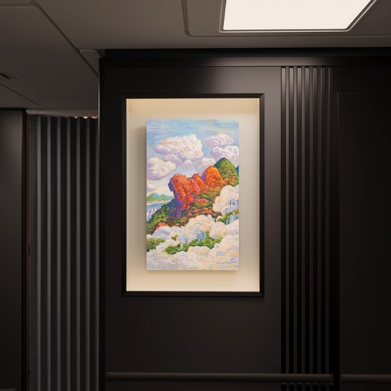 黃進曦《俯瞰獅子山》於國泰“空中畫廊”呈獻。(圖片來源:Mike Pickles) 另一件值得一提的展品是黃進曦的《俯瞰獅子山》,這幅作品以柔和的筆觸和飽和的色彩,描繪了香港的重要地標,彰顯了集體記憶。黃進曦希望這些精美的藝術品能為乘客帶來驚喜,讓飛行不再只是交通工具的利用,而是一場文化的享受。(完) 【編輯:黃璇】