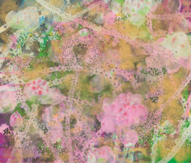 林天行《隨風》,水墨設色紙本,68x68cm,2023。