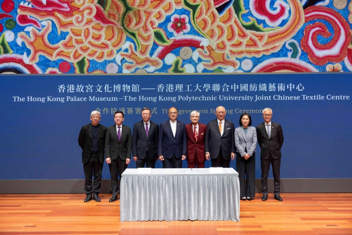 香港新聞網12月18日電 香港故宮文化博物館與香港理工大學宣布合作成立“香港故宮文化博物館—香港理工大學聯合中國紡織藝術中心”,旨在充分利用著名收藏家賀祈思捐贈的近三千件中國紡織藝術品,通過學術研究、教學和公眾教育,推動全球對中國古代紡織藝術的研究與創新。 合作協議簽署儀式於香港故宮文化博物館舉行,博物館董事局主席孔令成、理工大學校董會主席林大輝、校長滕錦光等見證了這一重要時刻。博物館館長吳志華與理工大學副校長楊立偉代表雙方簽署協議。