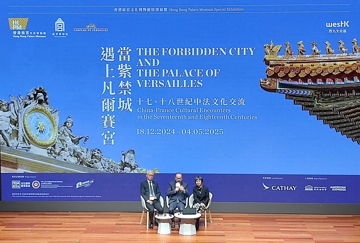 “當紫禁城遇上凡爾賽宮——十七、十八世紀中法文化交流”展覽傳媒預覽現場。(香港中通社記者 黃璇攝) 關於博物館人才培養,王旭東認為這是兩館發展的基礎,行業需吸引年輕人。他指出,隨著高校增設相關課程,關鍵在於需要有足够的業務支撐。他希望通過推動合作與學術交流,提升博物館的社會認知度,吸引更多年輕力量加入。 吳志華透露,香港故宮已與王旭東討論了明年的借展安排,將推出關於清代宮廷飲食文化與皇子生活的展覽。王旭東期待兩館的合作將結合北京故宮的學術成果與香港的策展理念,為觀眾帶來最佳的觀展體驗。 薩洛梅則認為,香港是歐洲與中國相互理解的關鍵。他對香港博物館的活力印象深刻,認為展覽的數量和質量都很高,這使得東西方文化差異比想象中小。此次展覽展示了中法文化的深厚聯繫,尤其是通過藝術品表達的歷史。他希望未來能與中國博物館開展更多互惠互利的合作。 他回憶起與故宮博物院和香港故宮的愉快合作,稱與北京同事的合作如同與法國同事一樣親切。對於中法之間的合作,洛朗·薩洛梅充滿信心,認為未來有無限可能,期待更多關於中國文化的展覽在法國推出。(完) 【編輯:黃璇】