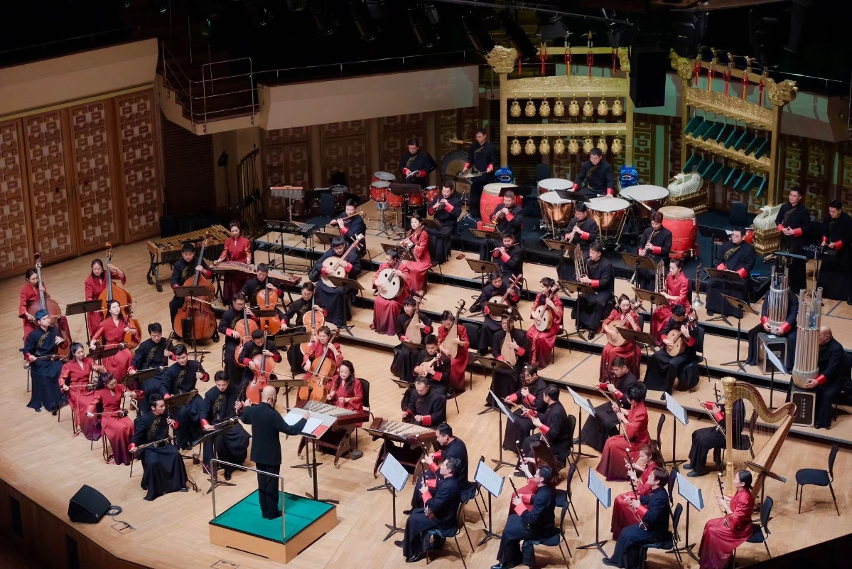 《頌·黃鐘大呂》音樂會氣勢恢宏。圖源:黃鐘大呂音樂會官方 值得一提的是,中央民族樂團近年來傾力打造的兩支由80、90後演奏家組成的室內樂團“儷人行”和“青衫渡”,在音樂會上分別展示了《梅》及《春江花月夜》兩首曲目,其視聽美感令人印象難忘。
