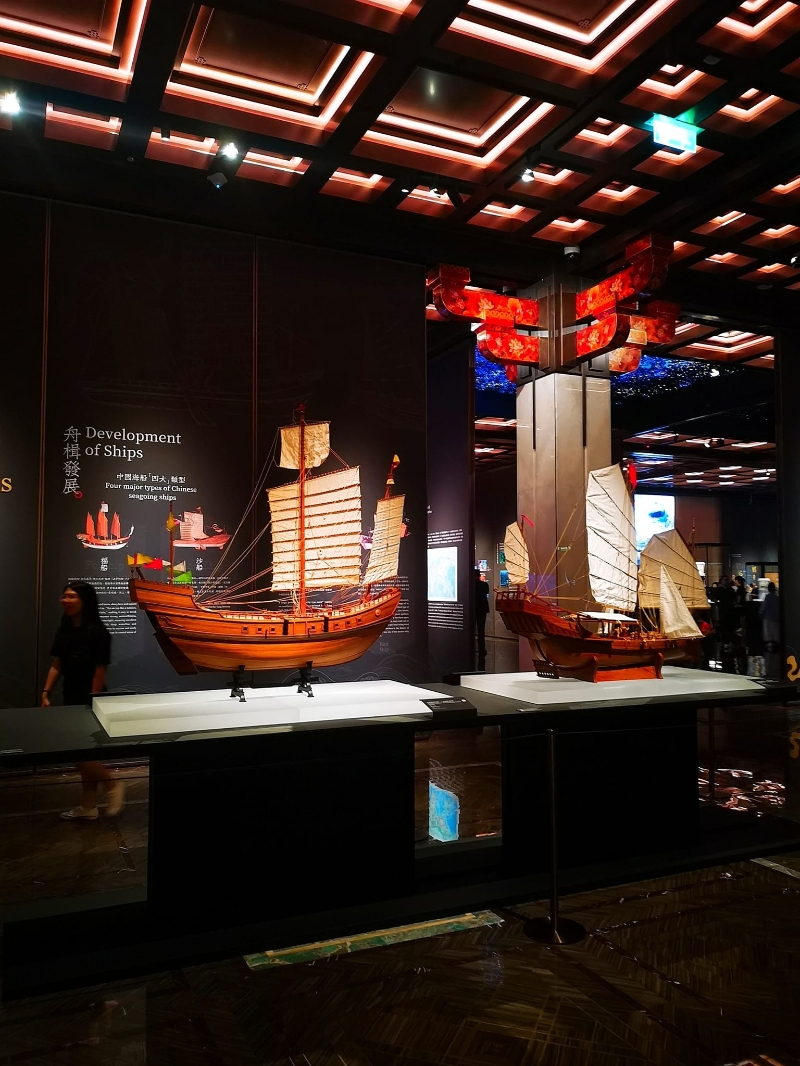 首展“藍色飄帶——探索神秘海域 邂逅絲路遺珍”展出了228件珍貴文物及當代藝術作品。(香港中通社記者 黃璇攝)