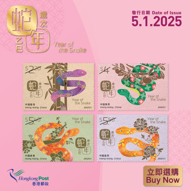 香港郵政“歲次乙巳(蛇年)”郵票。 (圖源:香港郵政)
