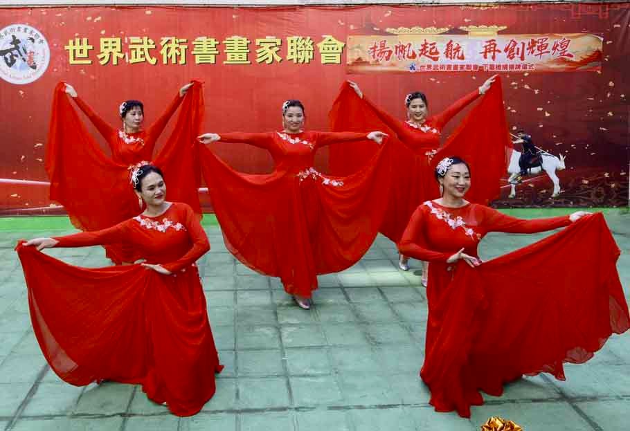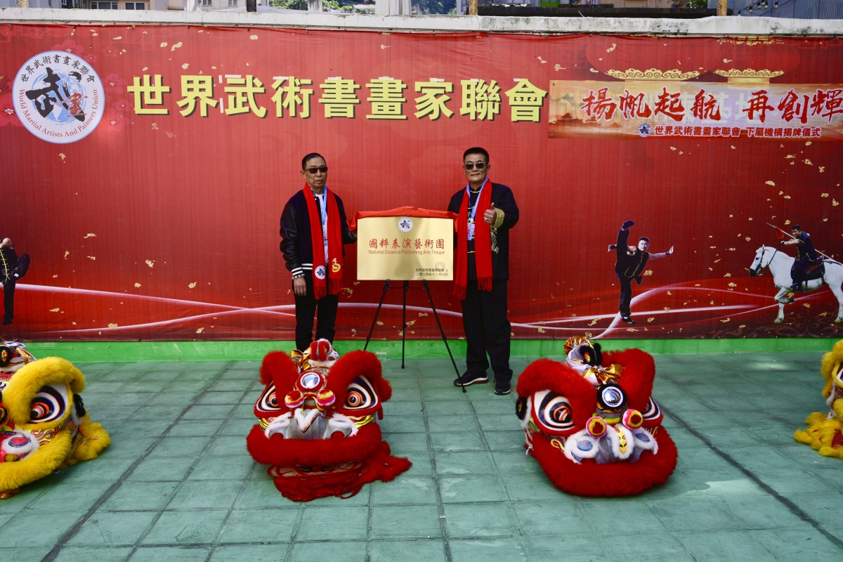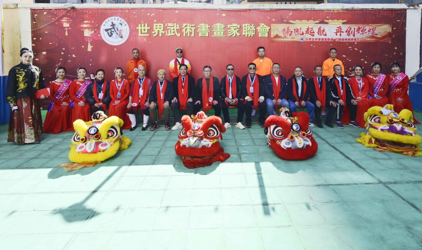 世界武術書畫家聯會主席高國雄是五祖拳的傑出代表性傳承人,還是一位功夫書法家。 世界書畫研究院和武術基地經過多年的發展,如今已遍佈內地、美加、東南亞、兩岸四地共16處武術訓練基地。下屬機構有“世界書畫研究院”、“國粹表演藝術團”、“傳媒影視製作中心”以及會員單位:中國功夫書法研究院等20個下屬機構,也成立註册聯會的官方網站,2024年開始舉辦了國際段位證及國際裁判證和國際教練證的考核陪訓及辦證,和香港藝術網聯合舉行了網絡武術書畫展,也分別多次應邀參加各社團活動,以及推擴傳統武術書畫藝術表演與交流、包括舞獅活動都得到社會各界的好評和贊揚。 當天出席儀式的有,世界武術書畫家聯會創會會長盧文快、主席高國雄、副會長兼國粹表演藝術團總監李玉騰、武術總監兼國粹表演藝術團執行團長劉相彪、傳媒影視製作中心顧問洪少葵、世界書畫研究院資深教授黃志明、國粹資深教授郭浩嘉、國粹表演藝術團執行團長劉紫娟女士、主任蔡第意、陳雪梅、李秋真、譚雅純及傳媒影視中心總監林長青、主任陳柏源等,嘉賓雲集。在熱鬧音樂下,現場還進行精彩節目表演。