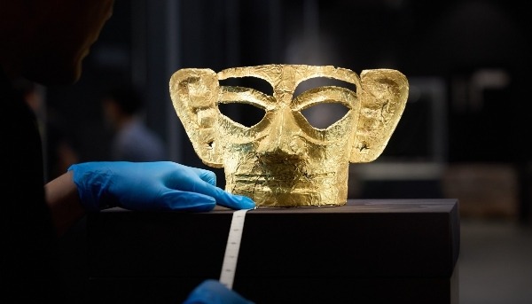 戴金面罩青銅人頭像  四川廣漢三星堆博物館藏
