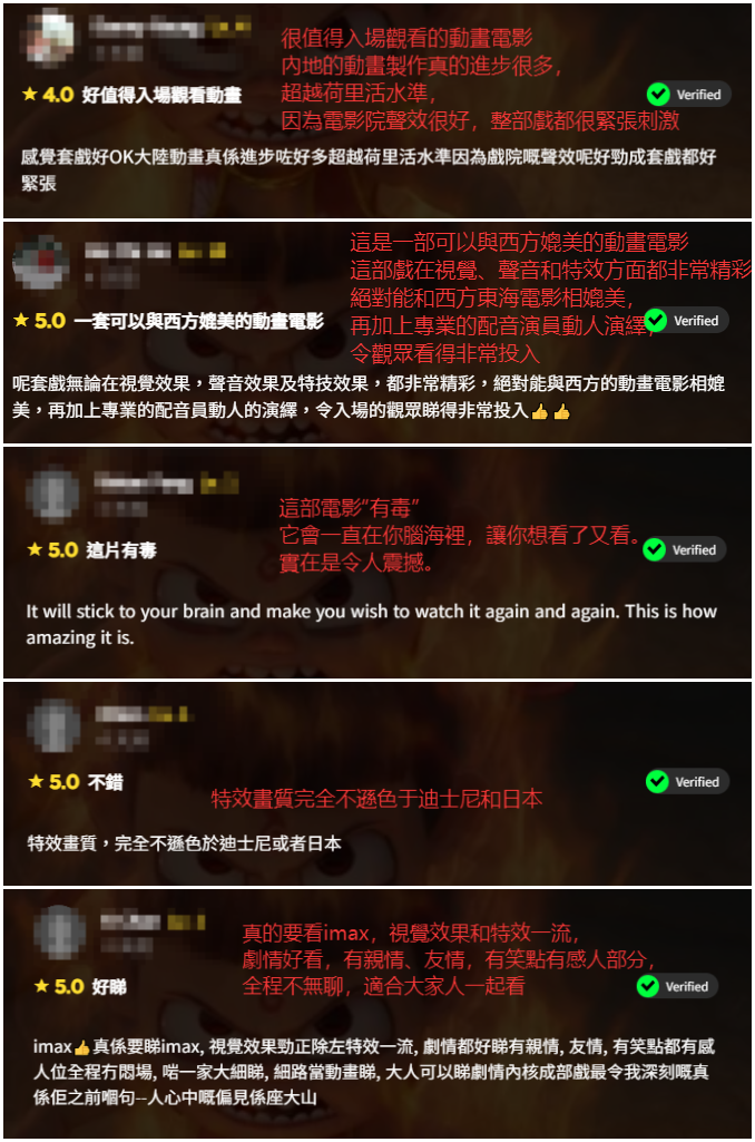 《哪吒2》在香港評分為4.2分。許多香港市民發佈影評表示很好看,認為內地動畫製作進步很多,與國外相比也絲毫不遜色。還有人表示這是一部“有毒”的電影,因為看了還想看。