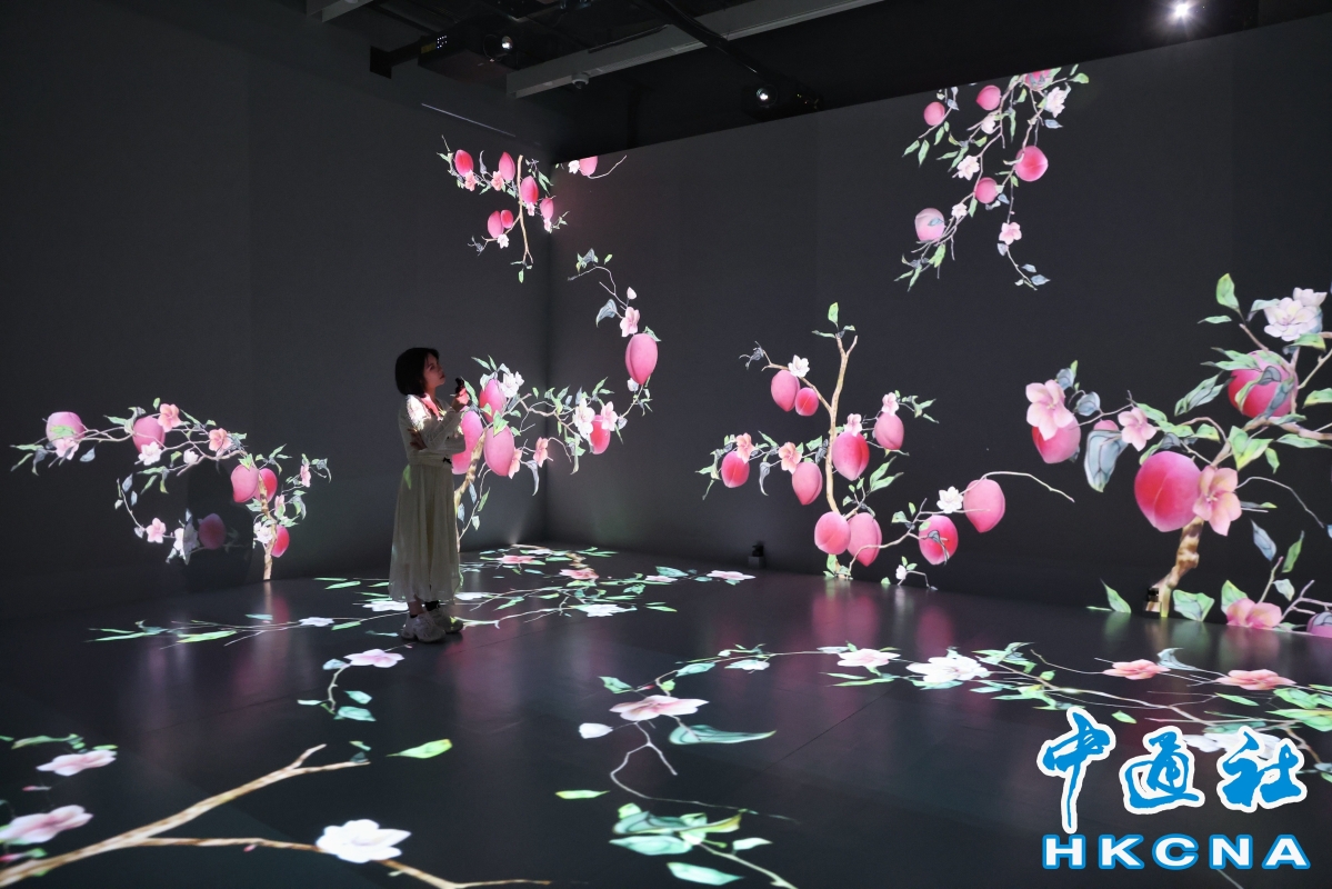廳內有超過30台投影儀,來打造光影動態變化的陶瓷紋樣。(香港中通社記者 謝光磊攝) 展館內沒有任何一件實體文物,有的只是光與影。例如,在“流光溢彩”這一展廳中,無論是墻面還是地面,都在投影儀等多媒體裝置照射下,投射出動態的紋樣圖案。一片片層疊的藍白色祥雲紋,似海浪潮起潮落;轉眼間場景更改,又有一顆顆粉紅飽滿的桃子高掛枝頭。 觀眾在展廳中移步,腳下的圖案也生變。走到樹枝附近,沒結果的枝頭碩果累累,未開花的枝條抽出新芽。展覽結合數碼創新技術,共分7個體驗空間,不同純粹用肉眼欣賞的視覺展,是次體驗展特地結合香港市民的觀展習慣,融入更多互動。 其中一個展廳內,直徑數米的“巨碗”吸引了觀眾的目光。據介紹,該廳內有超過30台投影儀,來打造光影動態變化的陶瓷紋樣。從荷花團紋、三果紋到壽帶鳥,常出現在瓷器上的經典紋樣,在巨碗上游走綻放;觀眾於碗邊沿輕輕揮動手掌,則能看到荷花紋樣在自己手下緩緩綻放,頗具意趣。 此外,觀眾還可以參與“古紋新生”互動,親手設計獨一無二的游魚和飛鳥紋樣。設計後的紋樣會在展廳的墻壁上游動、飛舞,讓觀眾更加沉浸式感受傳統紋樣被科技所賦予新生。 展覽將於5月14日至10月13日,在香港故宮文化博物館7號展廳開放予公眾參觀。這亦是香港故宮館和故宮博物院今年第三個合辦的展覽。 香港故宮文化博物館表示,未來將繼續與故宮博物院並肩,透過創新策展方式,弘揚及傳承中華優秀傳統文化,發揮香港作為中外文化藝術交流中心的獨特優勢。(完) 【編輯:黃璇】