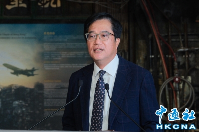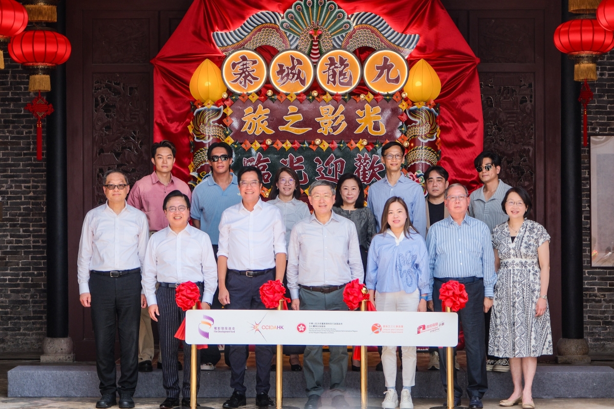 政務司副司長卓永興、財政司副司長黃偉綸,以及文化體育及旅遊局局長羅淑佩主持“九龍城寨光影之旅”電影場景展開幕儀式。