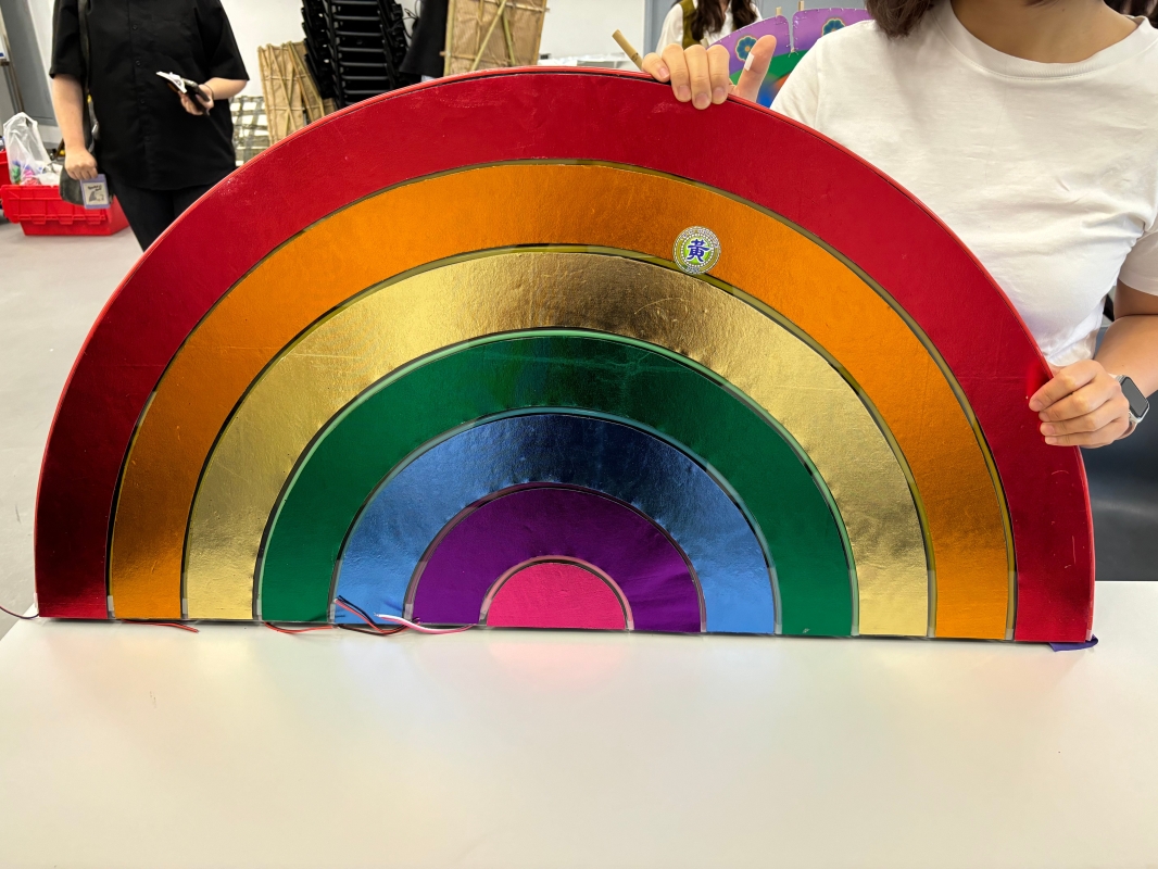 蔡榮基鼓勵學員創新,圖為學員製作的附LED燈帶、可磁吸的彩虹造型花牌。(香港中通社記者 黃璇攝) 然而,傳承之路並不容易。蔡榮基指出,現代社會對非遺關注不足,加上場地限制、原材料短缺等問題,使得技藝傳承面臨困境。為此,他在傳統基礎上融入創新元素,吸引年輕人和外國遊客的興趣。例如,他鼓勵學員嘗試新材料、新造型,但堅持“不用螺絲、不用膠水”的傳統工藝原則。 下月香港將迎來“非遺月”,蔡榮基受非遺辦事處邀在香港文化中心開設工作坊,向公眾講解花牌技藝。他認為,非遺月是推廣非遺文化的重要平台,能讓更多人了解並參與其中。 參與“花牌紮作技藝”項目的學員們自去年10月開始,歷經36堂課的學習,其作品將於6月21日在大館展出。此外,他們還將於9月走進中學,向年輕一代傳授技藝,讓非遺文化的種子在未來生根發芽。(完) 【編輯:黃璇】