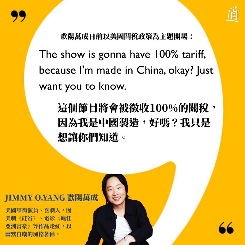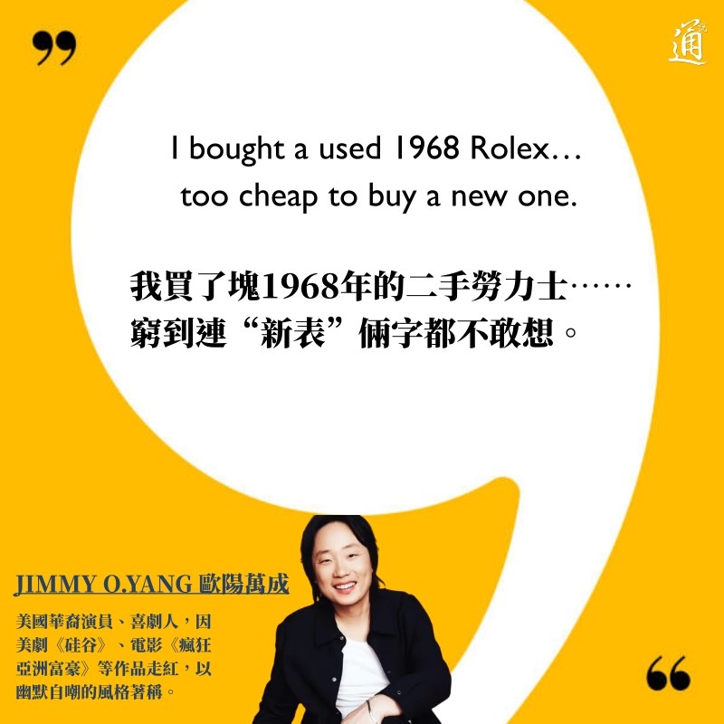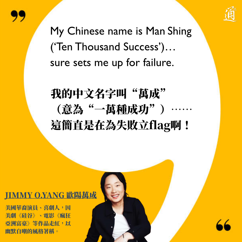 香港新聞網6月12日電 美籍華人喜劇明星歐陽萬成(Jimmy O. Yang)將於明日(6月13日)起至周日(15日)在香港體育館舉辦脫口秀演出,“旋風式訪港”行程備受關注。 歐陽萬成的父母來自上海,後來搬去香港,而他隨後也在香港出生,直到13歲才跟著家人一起移民美國加州。歐陽萬成的長相在美國人眼裡,是“典型東方面孔”,成長過程中,遇過的偏見與歧視不少。然而他並未因此而意志消沉,而是在文化衝突之中找到自己獨特的立足之處,憑著喜劇與演藝才能一飛沖天。 自21歲踏入喜劇圈,到現在37歲,歐陽萬成從一個必須在拍戲之間開Uber(網約車)維持生計的小演員,成功躍升為全球知名的喜劇明星,從《2 Broke Girls》、《Silicon Valley》、《Crazy Rich Asians》串角,到獨挑大梁的脫口秀演出,以及近日《Interior Chinatown》擔綱男主角,讓人不停期待歐陽萬成下一步又會端出什麼精彩作品。以下是香港新聞網整理歐陽萬成的金句和笑點,不妨一覽為他在香港的演出做好準備。