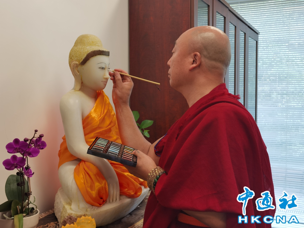 香港中通社6月18日電 (香港中通社記者 譚暢)當經年累月、一筆一畫繪出的唐卡作品,與AI(人工智能)在十幾秒間呈現的“臨摹”作品同台呈現,孰優孰劣?青海熱貢唐卡大師羅藏旦巴18日在香港大學舉辦的講座中,給出了答案。 “AI畫出的作品,是缺少能量、沒有靈魂的。” 羅藏旦巴是熱貢延續數百年“神畫師”家族的第14代傳人,在唐卡藝術上投入近50年光陰。唐卡作為西藏佛教中特有的繪畫藝術,畫師在繪畫過程中,要時時誠心誦念經文,為畫作注入能量。