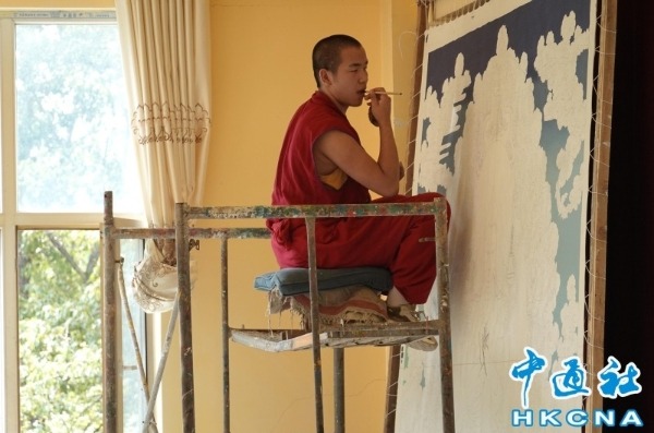 6月18日,青海熱貢唐卡大師羅藏旦巴在香港大學舉辦講座,並現場作畫,與學生交流AI能否取代唐卡畫師。(香港中通社記者 譚暢攝) 同時,畫師亦需遵循嚴格的圖像儀軌。唐卡造型必須按照《佛說造像量度經》造像典籍的規範,按“三疏一經”工巧明的詳細論述,上千尊造像的身軀各部位、各器官的造型尺度比例等,落筆不可有偏差。一幅唐卡短則用時半年,長則需要十餘年,才得以完成。 在羅藏旦巴看來,AI沒有信仰。由AI繪出的畫,好似元素的拼貼組合,可對唐卡而言,拼貼出的內容即使錯位一寸,其寓意都天差地別,有凡聖之分。此外,繪製唐卡時需要用到天然礦物原料,在繪製時亦是將山河精魄寄託其中;而AI生產出的畫作縱使顏色模型再精準,也終究是沒有重量的光子。 不過,AI的算法同樣也可以為唐卡線稿校正毫釐之間的偏差,以光譜色彩將礦物的顏色保留千年。羅藏旦巴期望,AI可以為唐卡的繪畫帶來便利,但唐卡薪火相傳的本質,不應被AI所掩埋。 隨著科技發展,人們越來越多地使用電子平板、電子筆作畫。羅藏旦巴說,這自然會對藝術的傳承有影響,他亦會感到有些擔心。不過,也正因此,他加快了推廣的步伐,是次來香港做講座,正是想讓更多年輕人了解、喜歡唐卡藝術,期望學生們更好地以修行的方式,完成一幅唐卡。 羅藏旦巴亦現場對唐卡作品進行裝裱,並與參與講座的聽眾互動,科普唐卡知識。作為西藏佛教中特有的繪畫藝術,唐卡是一種彩緞織物裝裱成的卷軸畫,其並非以紙張進行繪製,而是採用打磨平滑的棉布。有聽眾好奇地撫摸尚未裝裱的作品邊角,感受唐卡的質感,由衷欣賞這門藝術的靈魂與能量。(完) 【編輯:黃璇】