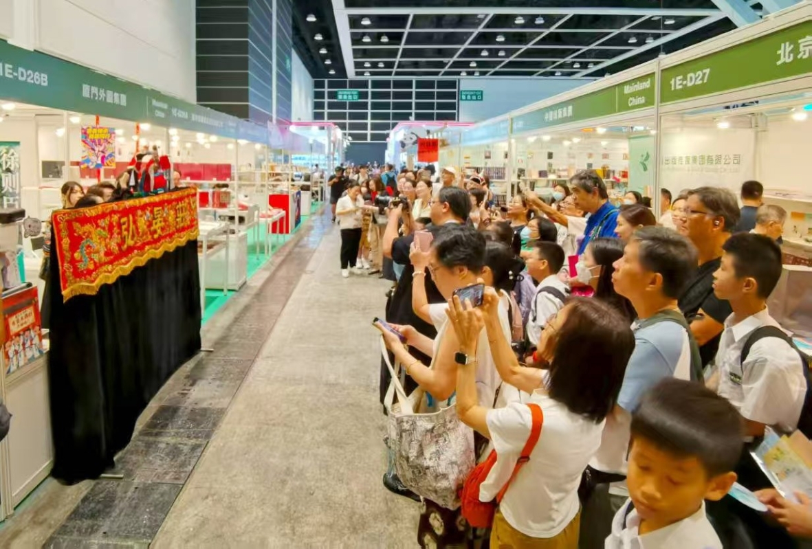 香港新聞網7月16日電 7月16日,由香港貿易發展局主辦的第35屆香港書展,連同香港運動消閒博覽及零食世界開幕,一連7日於香港會議展覽中心舉行。今年書展以“飲食文化・未來生活”作年度主題,超過770家展商參與,讓書迷從飲食為題的作品中細味文化風情、生活態度,並探索未來科技孕育的新飲食文化。當天,書展場內香港耀華文化慈善基金會策劃《中華傳統美德故事》新書上市暨木偶劇沉浸展演吸引眾多現場觀眾。國家級非遺項目木偶戲代表性傳承人、80多歲的藝術家莊陳華表演布袋木偶戲《水滸傳-大名府》。貿發局主席馬時亨、香港藝術發展局主席霍啟剛等嘉賓在了解掌中布袋木偶。