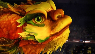 【解說】從骨骼到鱗片,從外紗到色彩,為了讓這條鰲魚在開幕式上做到栩栩如生,尚天寶的團隊在30米的“鰲魚”身上做了大量的巧思設計。