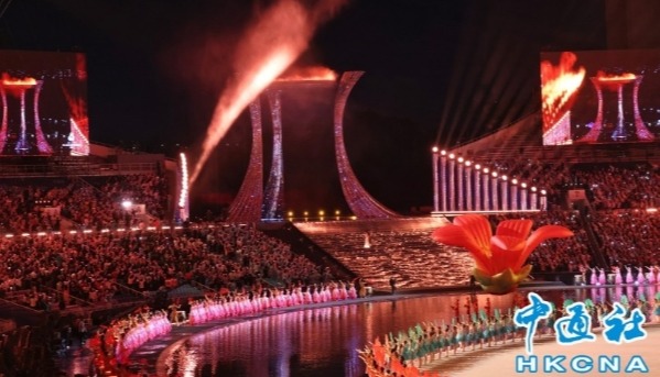 【解說】鰲魚在傳說中是“鯉躍龍門”化龍之前的過渡形態。在《山海經》中,鰲魚是 “背負蓬萊仙山”的神物,象徵著穩固與祥瑞。十五運會開幕式美術總設計尚天寶告訴香港中通社記者,“鰲魚”不是天馬行空,空穴來風的想象。它多年以來一直陪伴著灣區居民的生活,是一個實實在在的文化符號。