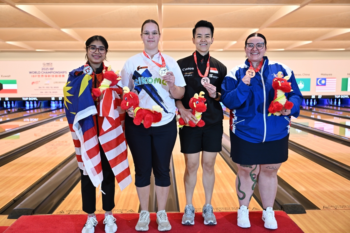 女子單人賽獎牌得主-(左至右): 伊雲施莎莉(馬來西亞 - 銀牌), 柏嘉寧 (芬蘭 -金牌), 黃琳芷(新加坡 - 銅牌), 姬瑪 (美國 - 銅牌)。