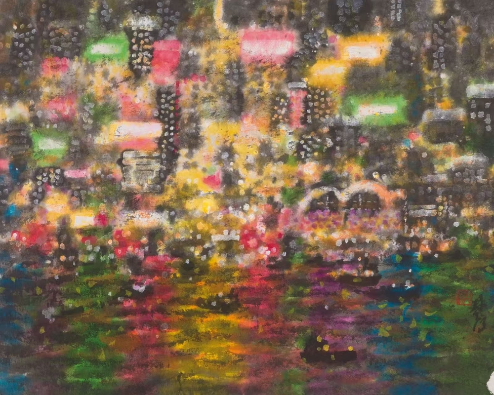 港島寶雲道是世界十大夜景之一,俯瞰高樓林立的豪宅延至維港的斑斕燈光,港人生活真真切切,這幅浮動的美妙被香港美術協會主席林天行用畫筆定格,他一口氣創作了主題“夜·香港”畫展正在中環舉行。